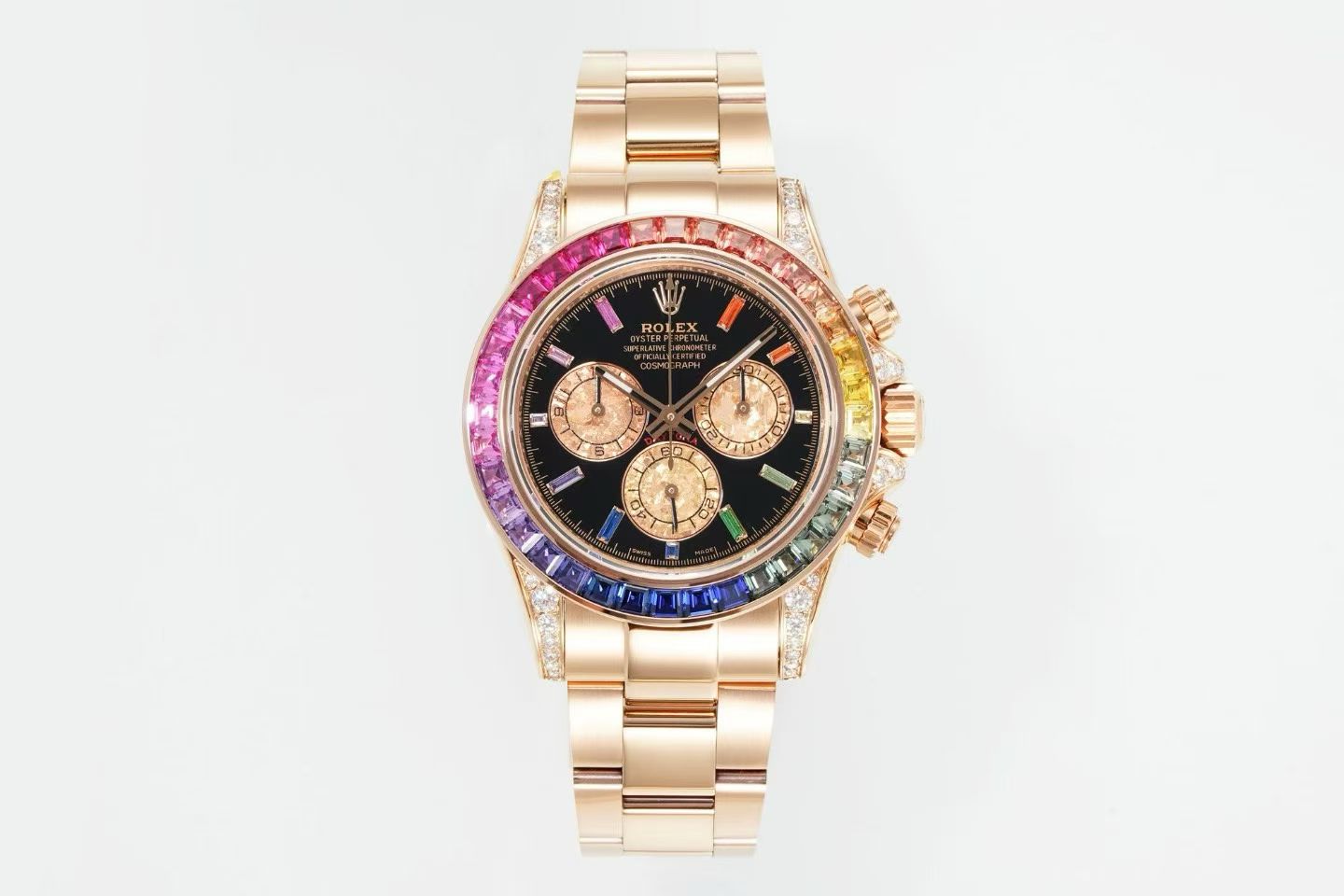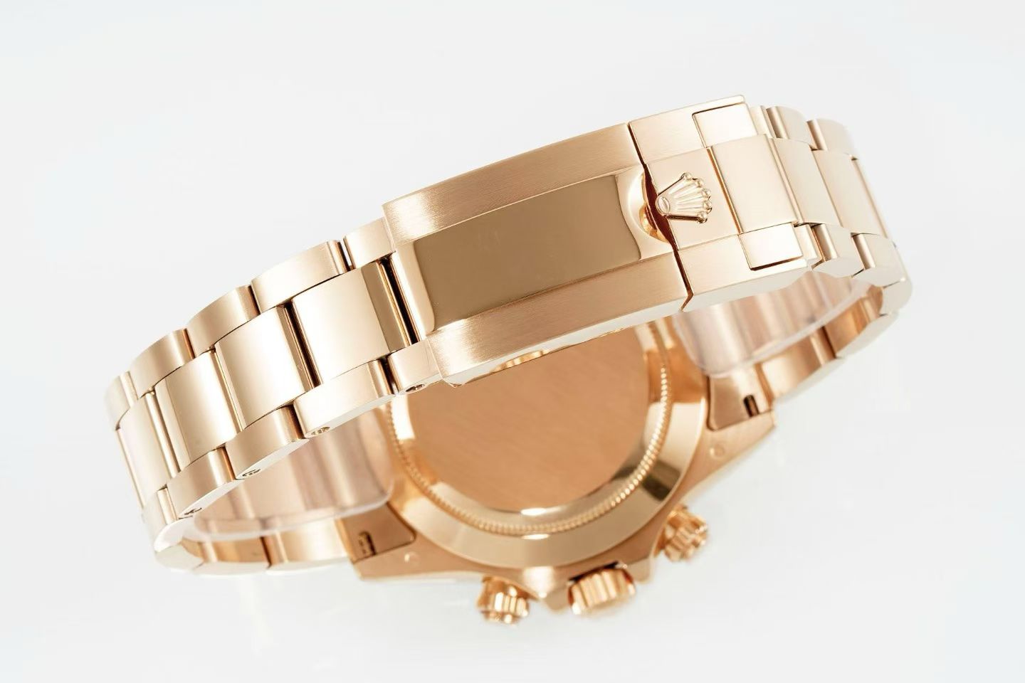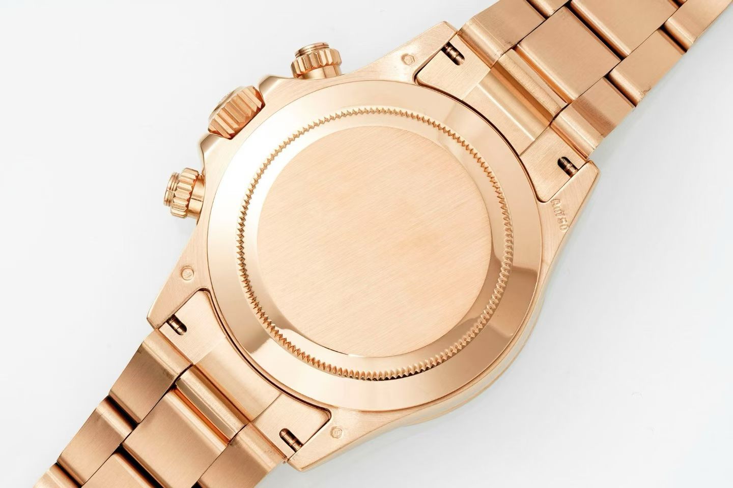 デイトナの改造は、特にオリジナルのロレックスモデルと一対一の同等性を目指す際には、心の弱い者には向かない作業です。ここでは、重量配分の複雑さが重要になります。RX Modificationsは、2000年代以前のデイトナからヒントを得ており、わずか数グラムの差が真贋を分けることを理解しています。スチールブレスレットモデルは206から212グラムの範囲にあり、ゴールドエディションのケース形状の多様性によって変動します。例えば、ローズゴールドやホワイトゴールドのバリエーションは、スチールのものよりもわずかに重く、2から5グラム程度の差がありますが、これはRX Modificationsの真実性へのこだわりを反映しています。