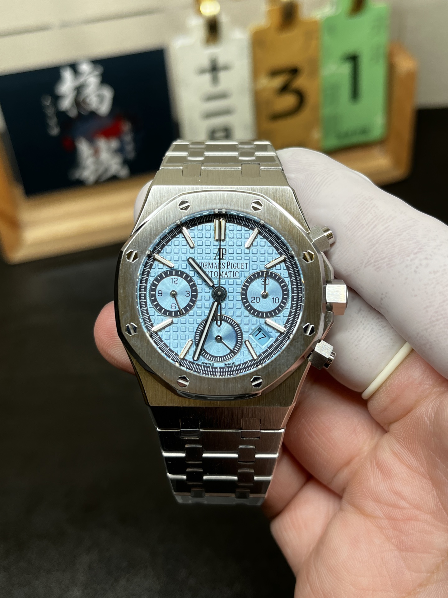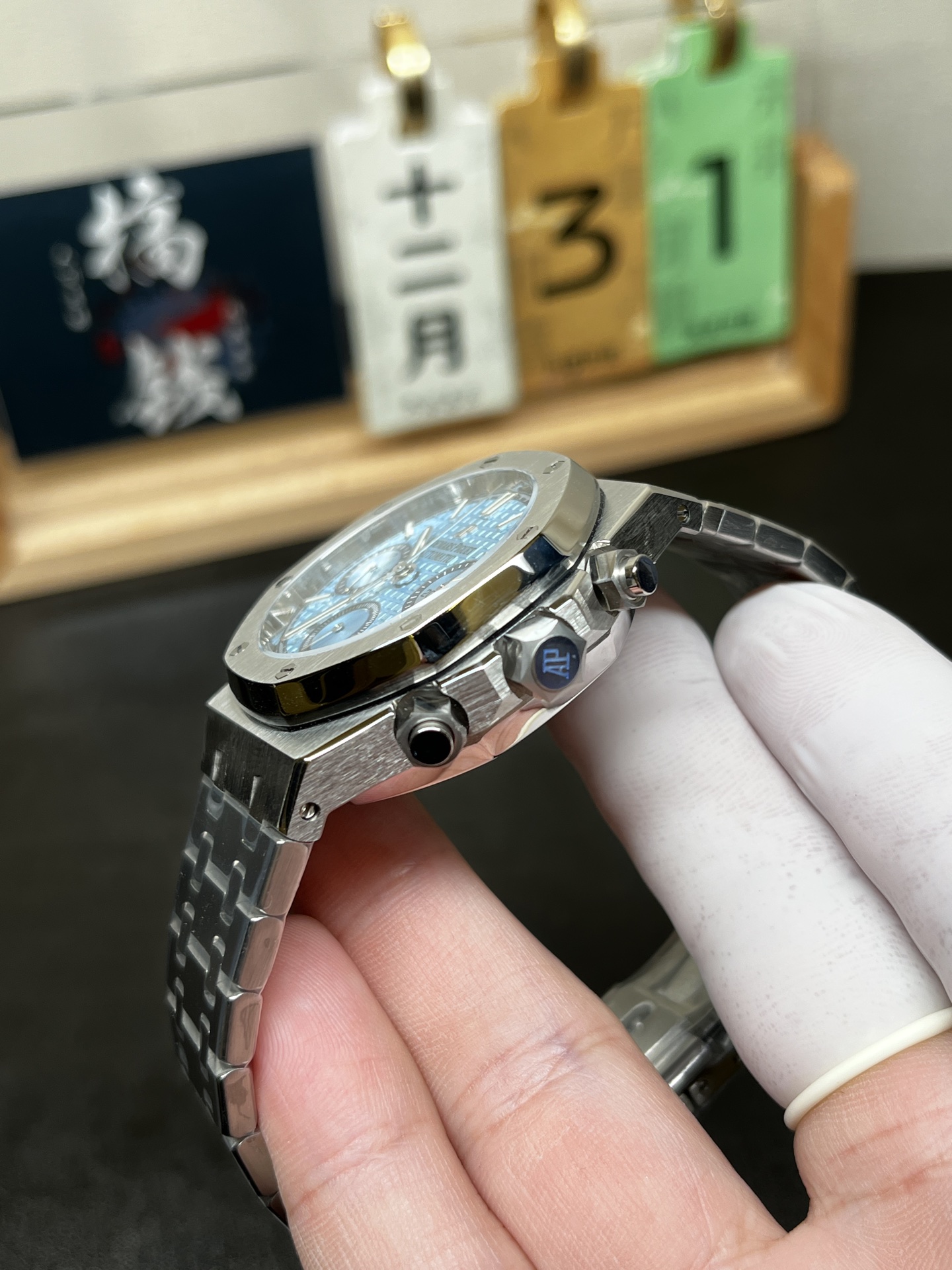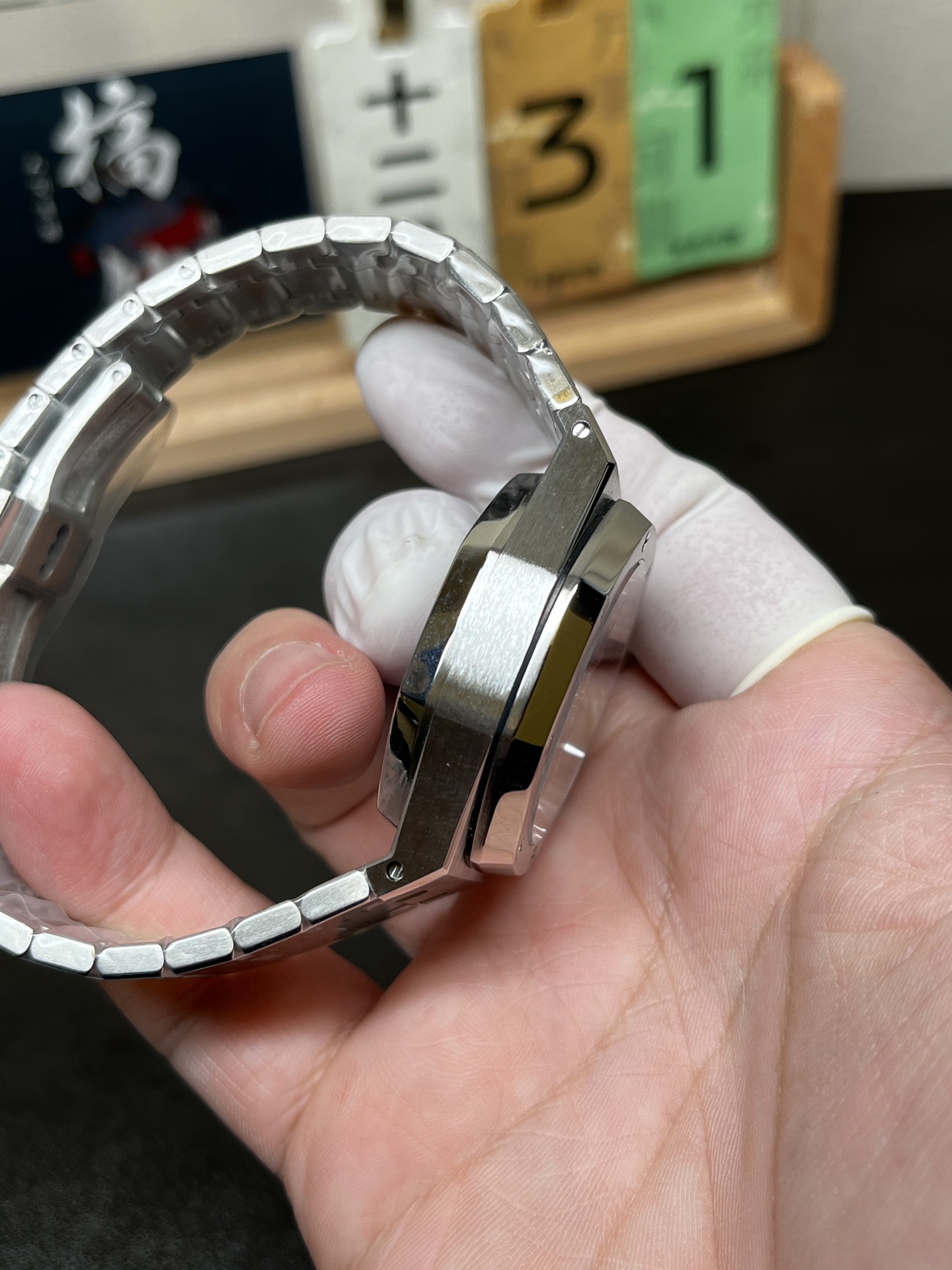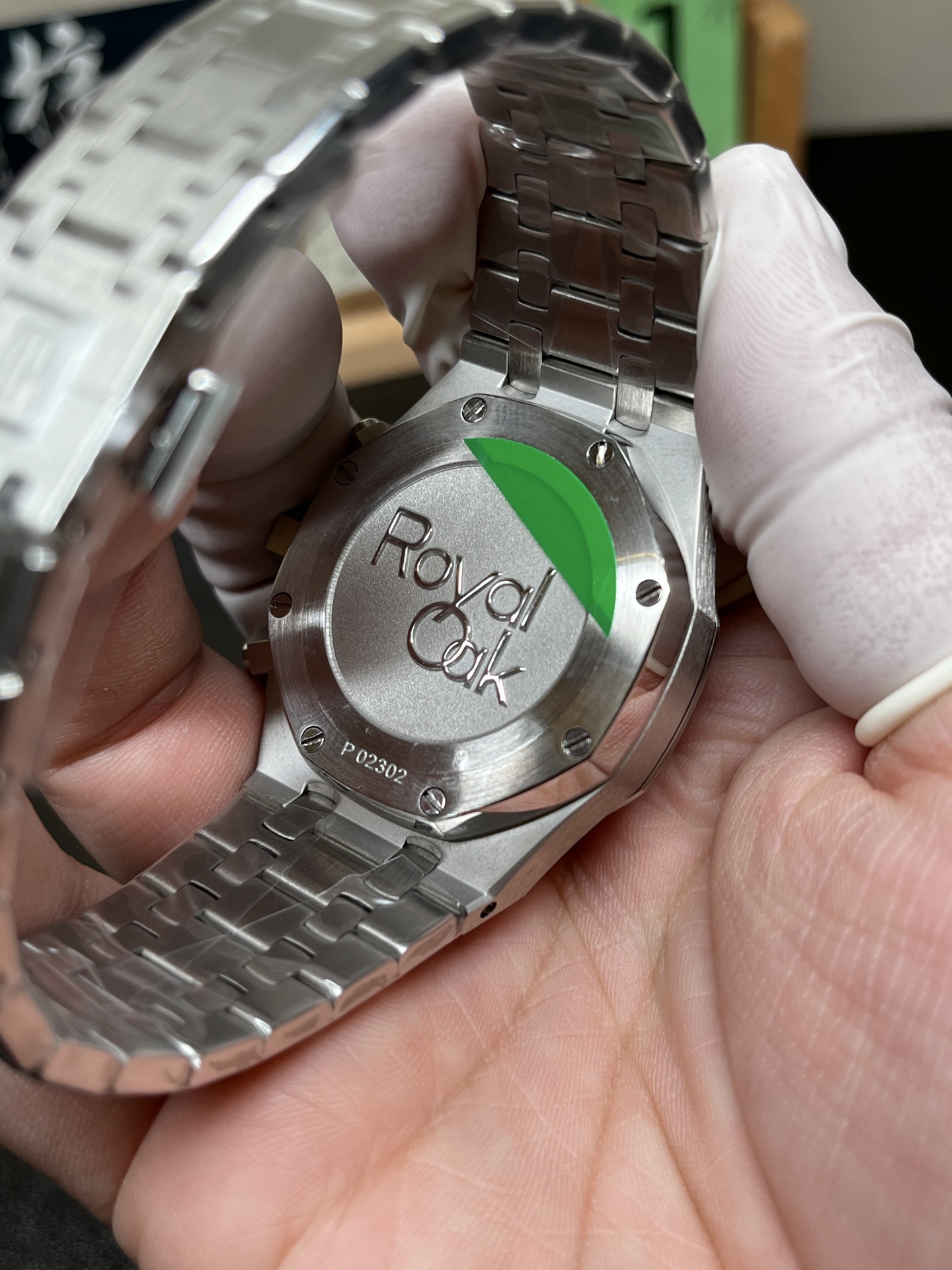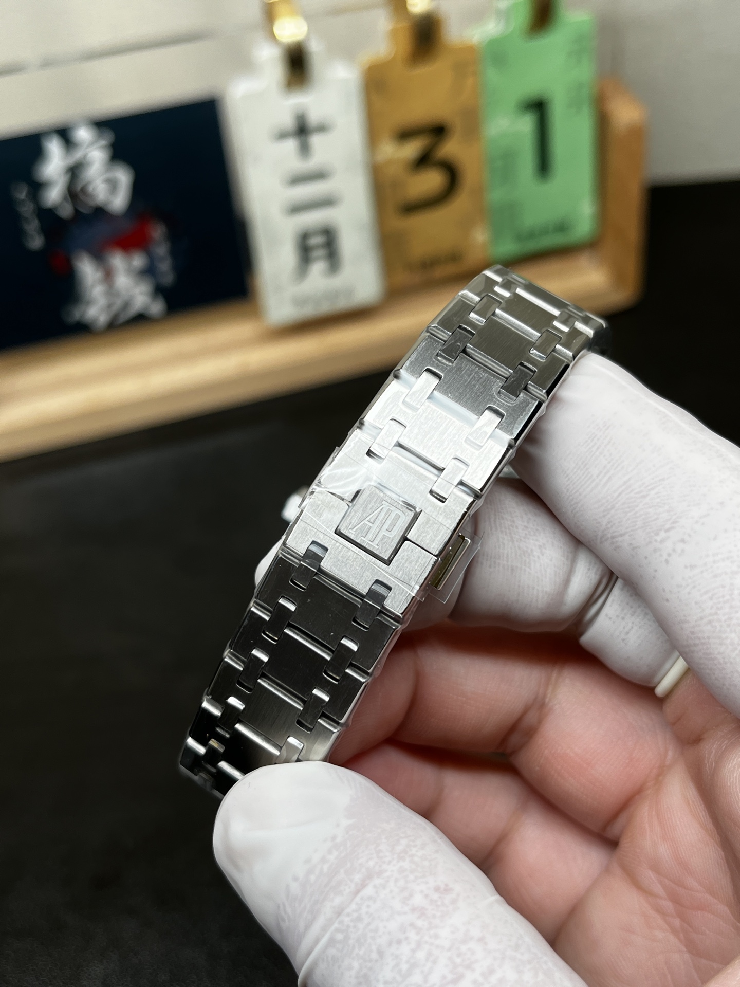 ロイヤルオークの魅力はその美的優雅さだけでなく、技術的な熟練に根ざしています。レプリカも驚異的なディテールへのこだわりを持ち、耐久性の高い316Lステンレススチールから作られています。手作業でのブラッシング仕上げやハードウェアの研磨に至るまで、オリジナルを忠実に再現しています。ベゼルには32個のブライトカットダイヤモンドが飾られ、贅沢な時計の複雑なデザイン原則を理解した努力が伺えます。