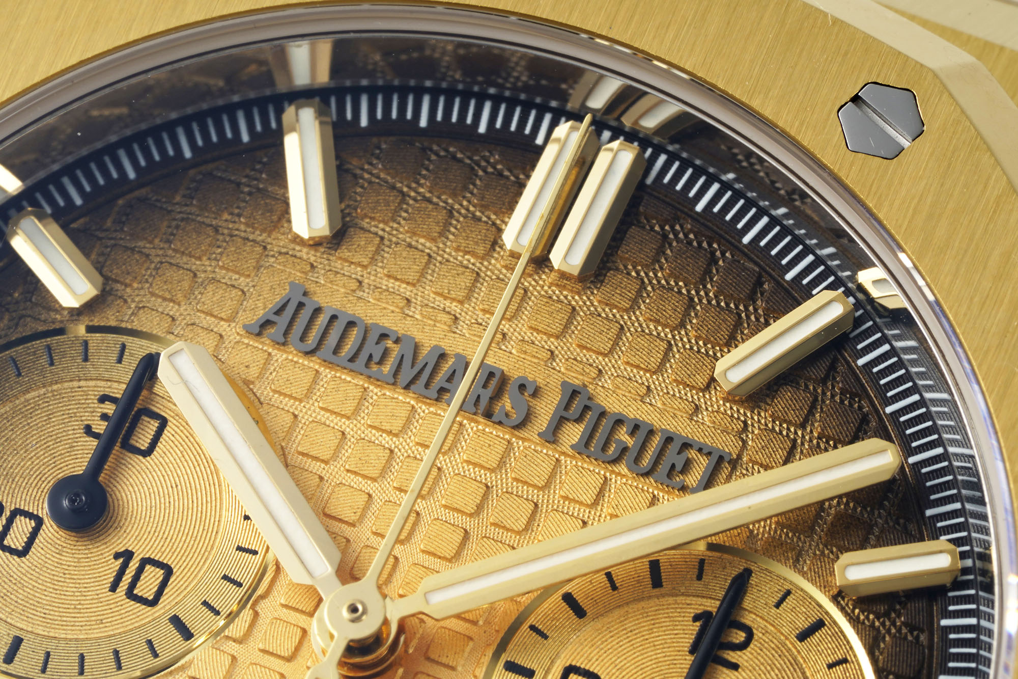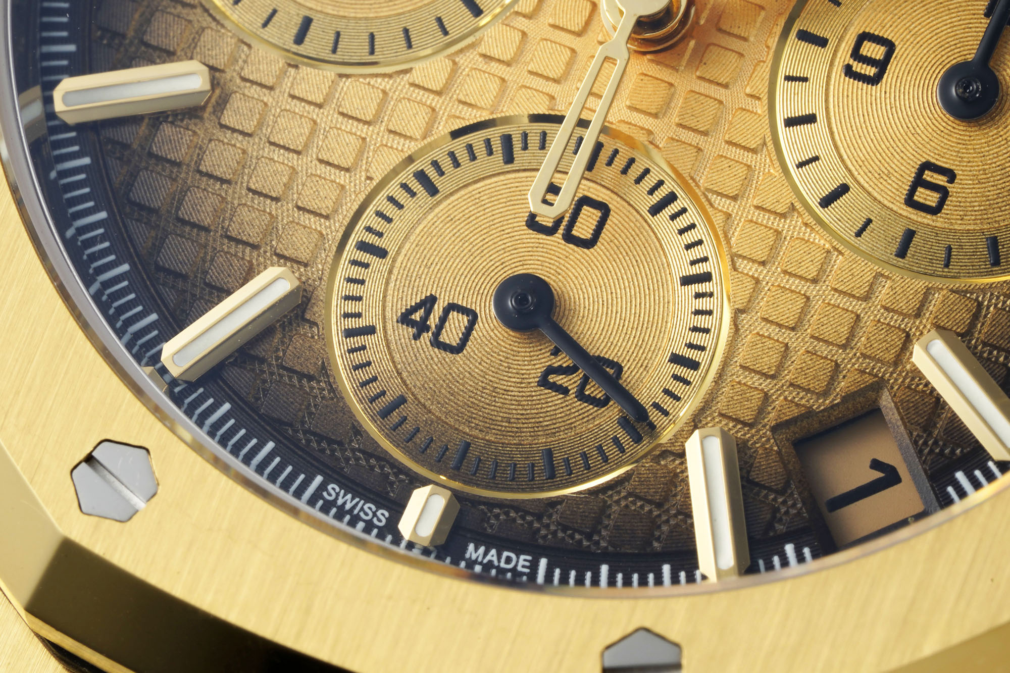 デザインを分析すると、単なる美的追求以上のものが見えてきます。ダイヤルのロゴは単にスタンプされたものではなく、オリジナルの正確なプロポーションに従って精巧に刻まれており、特徴的な「A」の長い足と角度のついた「E」が際立ちます。ダイヤルのベーステクスチャーのグリッドパターンは均一にエンボス加工されており、オリジナルのワッフルギョーシェを模倣した堅牢な視覚的深さを保持しています。