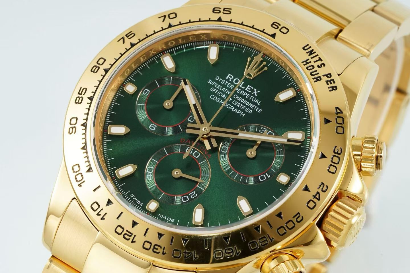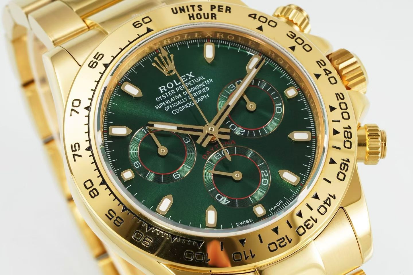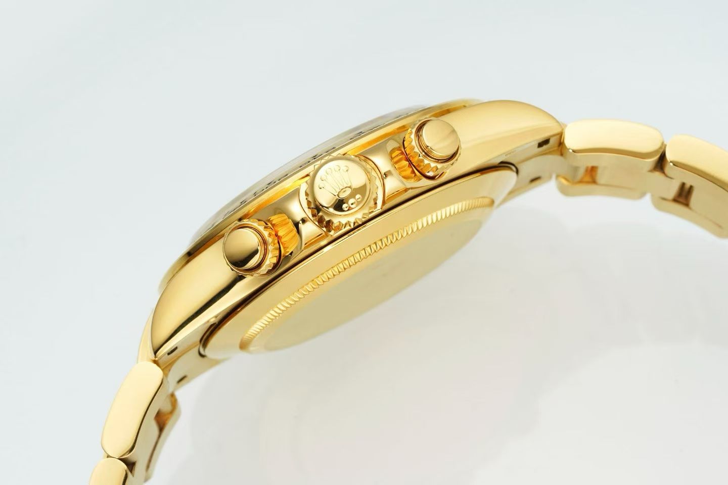 ケースの細部はすべて、オリジナルのデイトナの仕様を反映するように綿密に彫刻されています。ゴールドモデルの正確な角度や、ローズゴールドやホワイトゴールドの微妙な突起にかかわらず、RX Modsはレーザーエッチングの代わりにCNC彫刻技術を採用しています。この選択により、精度、深み、そして触感のある品質が保証され、レプリカが劣っているという概念を拒否します。メッキの色は市場基準を超えて校正され、18Kゴールドの色合いや独自の指紋保護フィルムが特徴です。このような職人技への深い献身は、倫理的な視点を強調します:これらのレプリカ時計を作るための芸術性を無視することは正当化できるでしょうか?