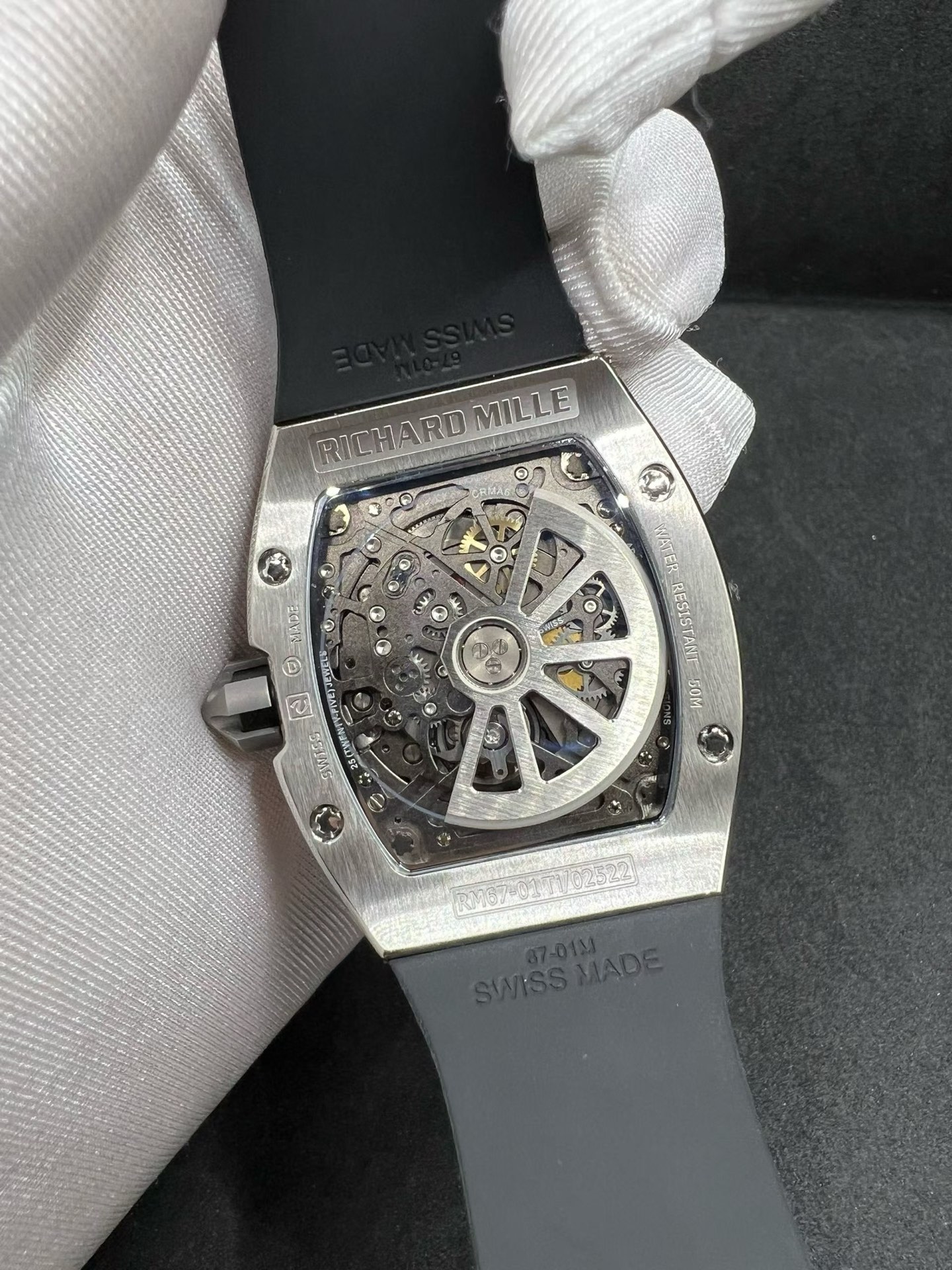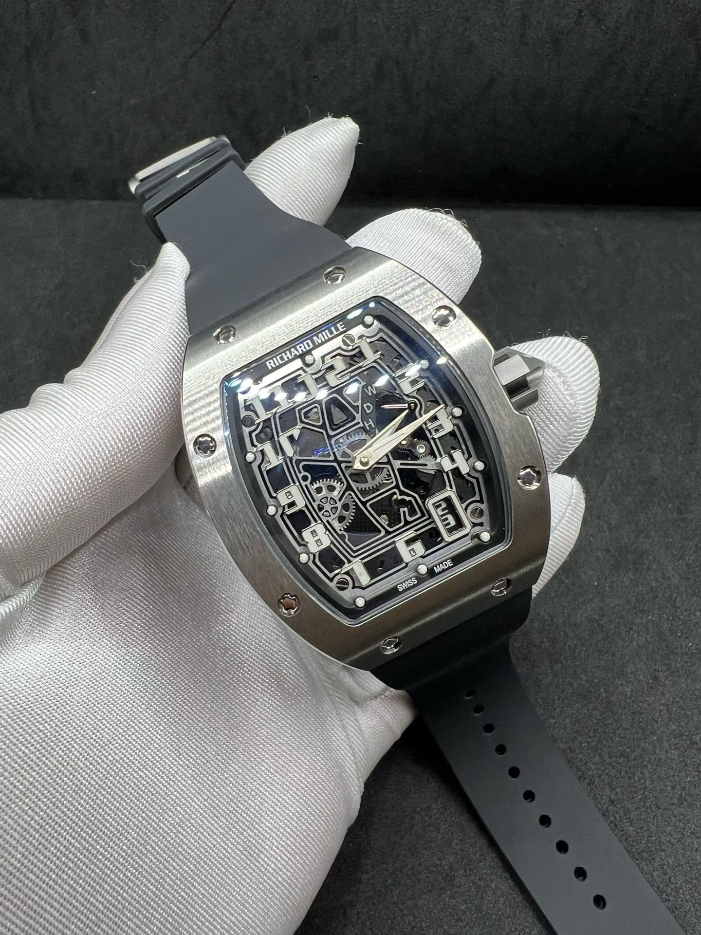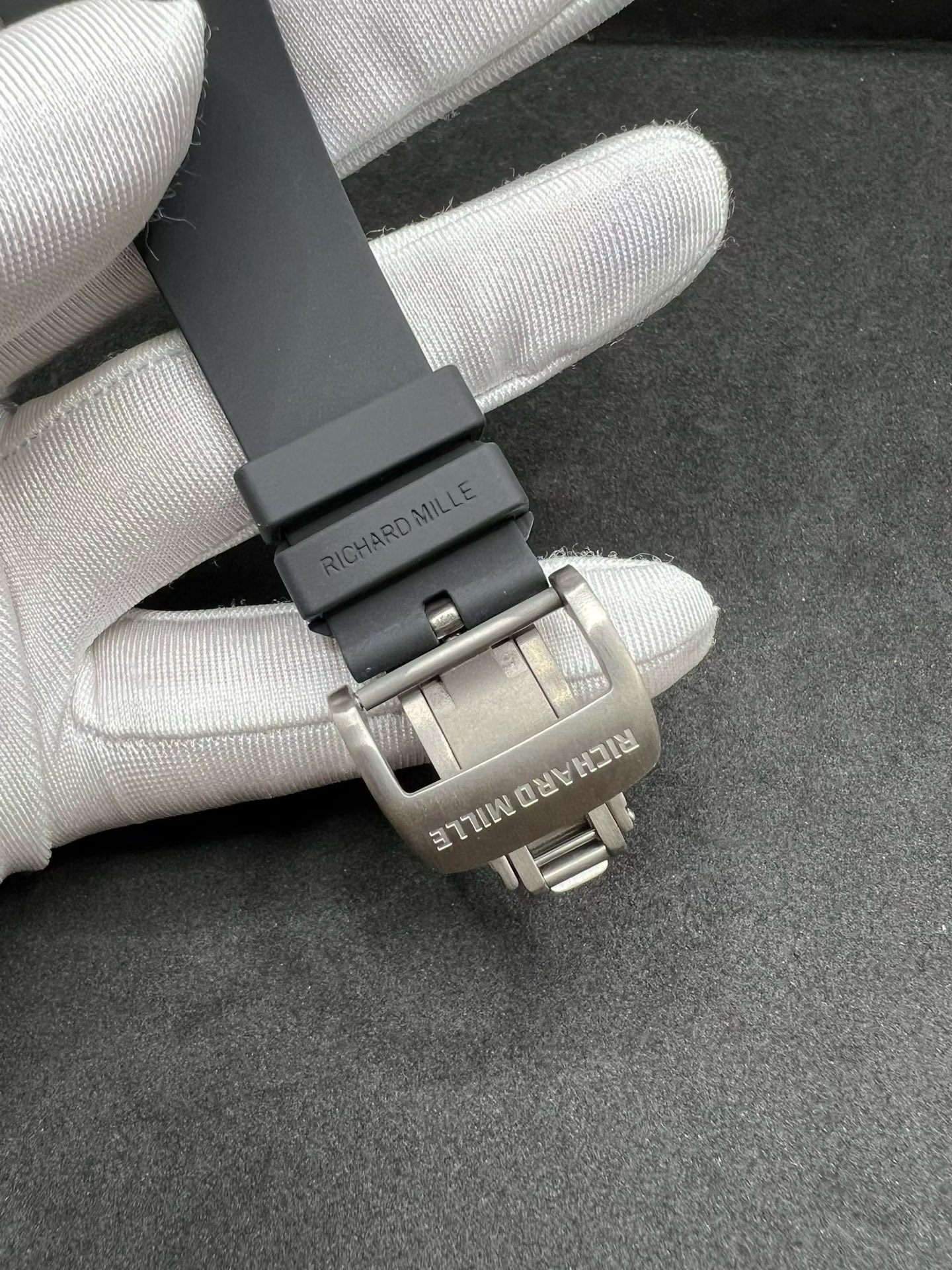 リシャール 67-01の魅力の中心には、完全なチタン構造があります。このため、時計全体の重さはわずか数十グラムで、非常に軽量です。この軽量化は、装着者の快適さを高め、高度なエンジニアリングを反映しています。強度と軽量性で知られるチタンケースは、アクティブなライフスタイルに最適で、スタイルを損なうことなく耐久性を提供します。