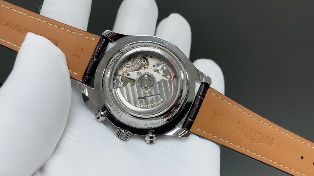 ロンジン マスターコレクション ムーンフェイズの魅力の中心には、そのムーブメントがある。GSファクトリーのアダプテーションは、オリジナルのキャリバーL.687を再現するために再設計された丹東7751ムーブメントを採用している。この技術的成果により、ムーンフェイズ、総合カレンダー、24時間表示、多機能クロノグラフを備えたプロトタイプと機能的な同等性を維持している。これらの技術機能の調整は、レプリカ製造の能力における大きな飛躍を示している。