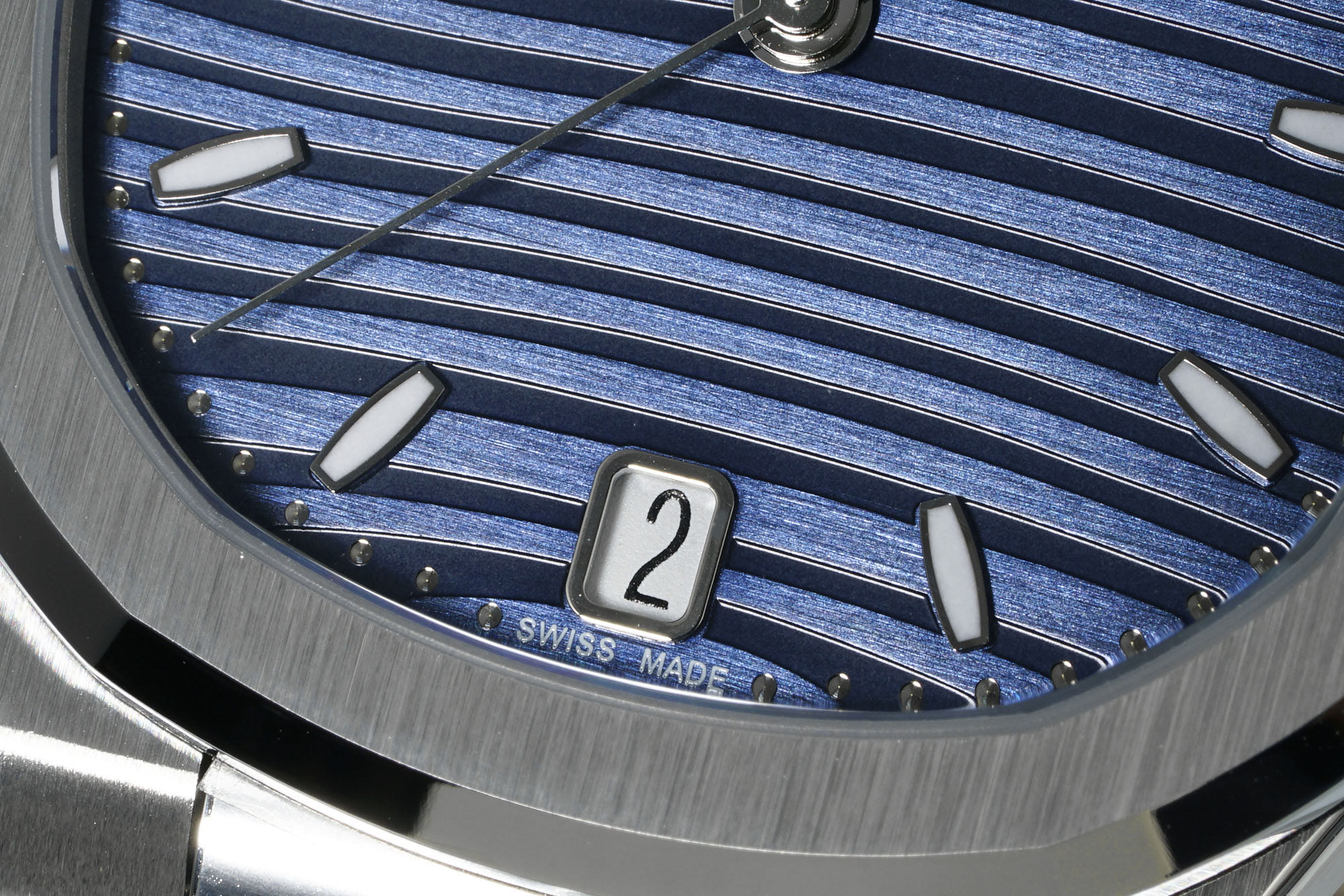 DDF Nautilus 7118は、その本物の対応品と驚くほど似ています。これは、細部にわたる綿密な注意によって達成されています。特に印象的な銀白のダイヤルから始まり、このダイヤルは微妙にブラッシュされた波模様のおかげで、本物の魅力を反映した輝きを放っています。こうしたデザインの複雑さは、通常、職人技のレベルを示唆しており、レプリカ時計製造の進化と洗練にスポットライトを当てています。