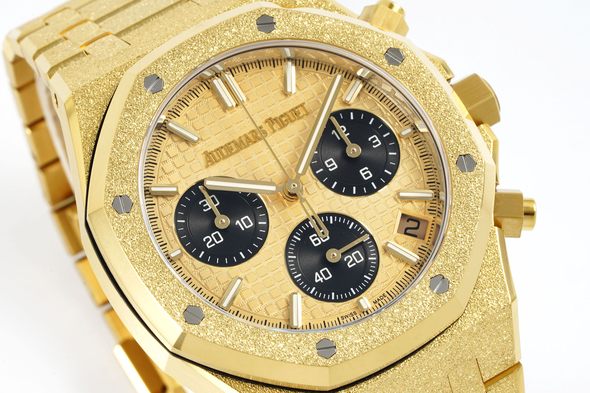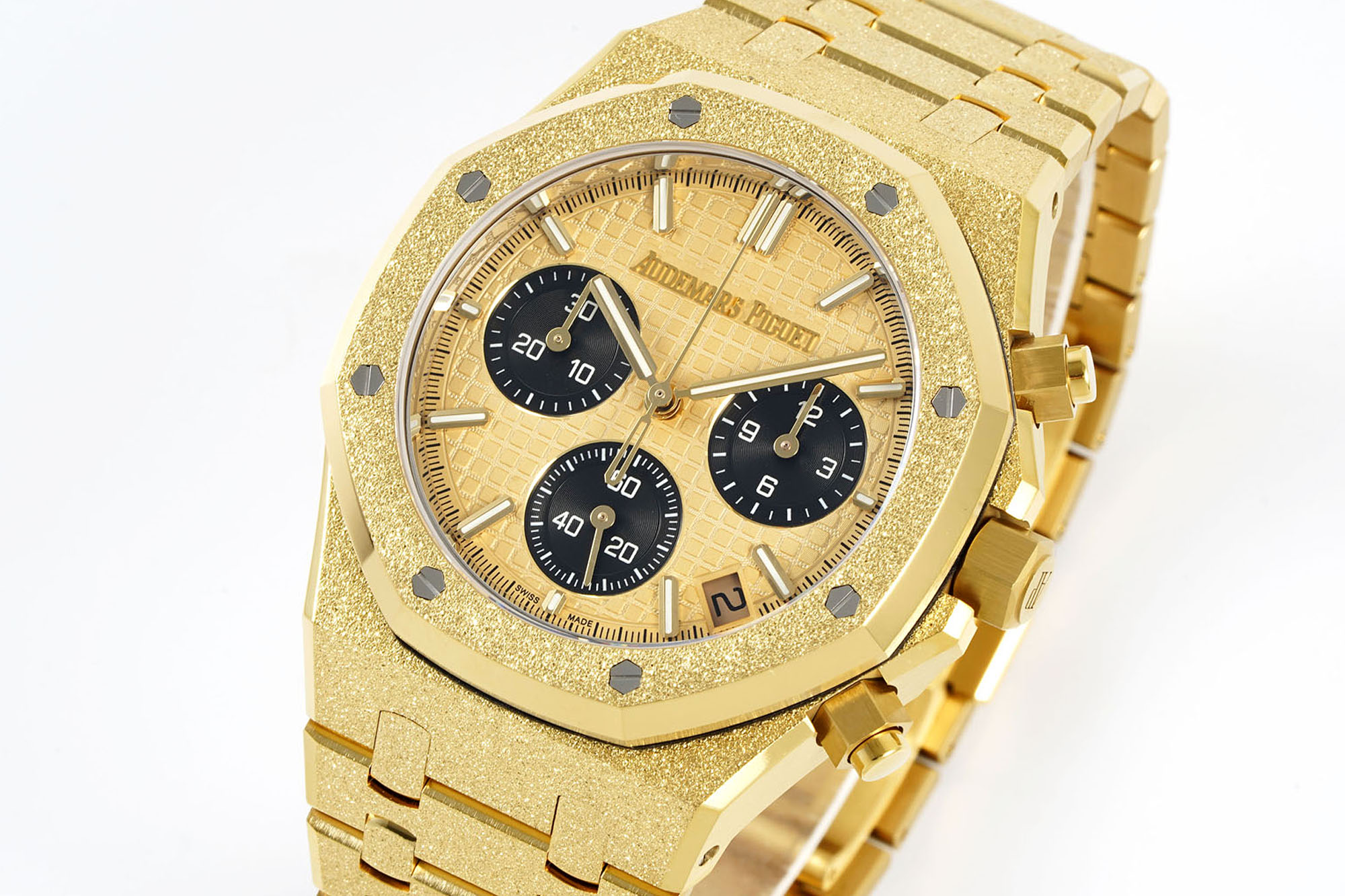 デザインに関しては、レプリカのダイヤルはロゴの精密なレーザー彫刻を特徴としており、「A」の延長された足から「E」の斜めの中間まで、元のすべての側面を再現しています。ダイヤルのワッフルパターンは、元の放射状のテクスチャを細心の注意を払って反映し、洗練されています。この完璧への追求は、日付窓の精密な彫刻とベゼルの独特な六角形の穴の位置によって強調されています。特に、高光沢の輸入ネジを使用することで、磨かれたシームレスな外観が実現されています。