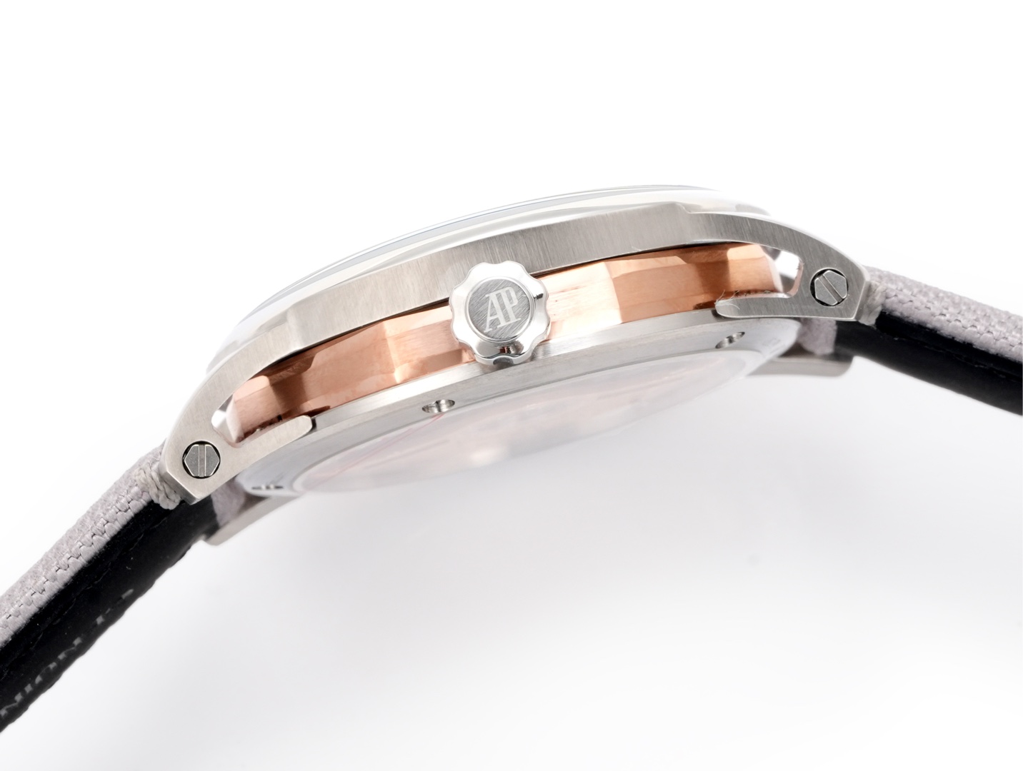 APKが採用する洗練された製造技術には形状と機能の統合が明らかです。オープンワークラグは、超薄型ベゼルに溶接されることで上部で固定され、シームレスで堅牢な構造を確保します。ラグの基部はケースバックと無理なく一体化し、流れるようなシルエットを作り上げ、ブランドの細部へのこだわりを示しています。このデザインへの献身は、ケース、ラグ、ベゼルに施されたサテン仕上げ、面取り、ポリッシュ処理によって強調され、フォーマルな装いにもカジュアルな装いにも映える美学を提供します。