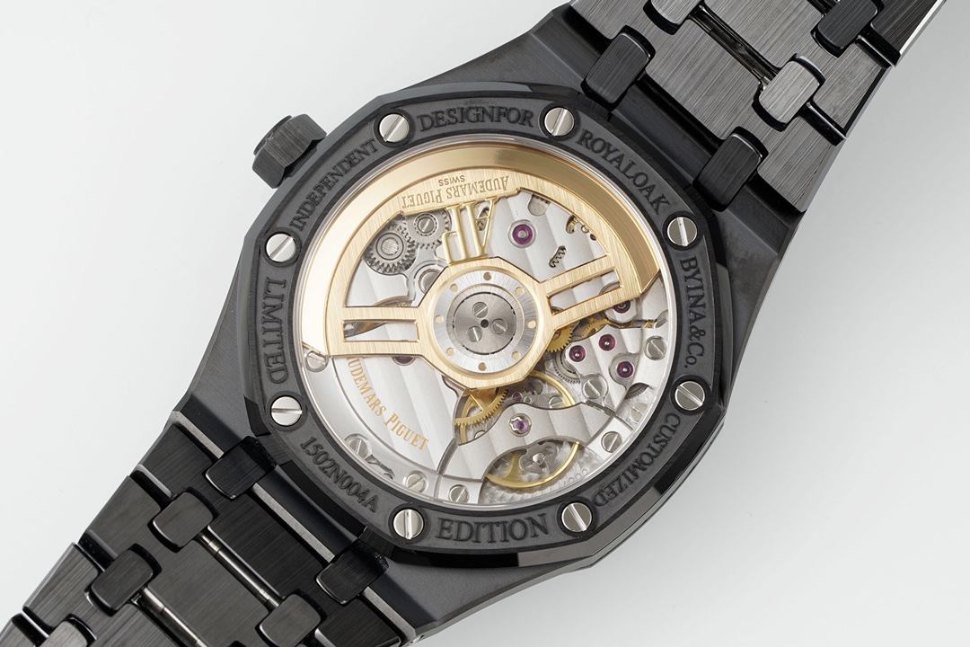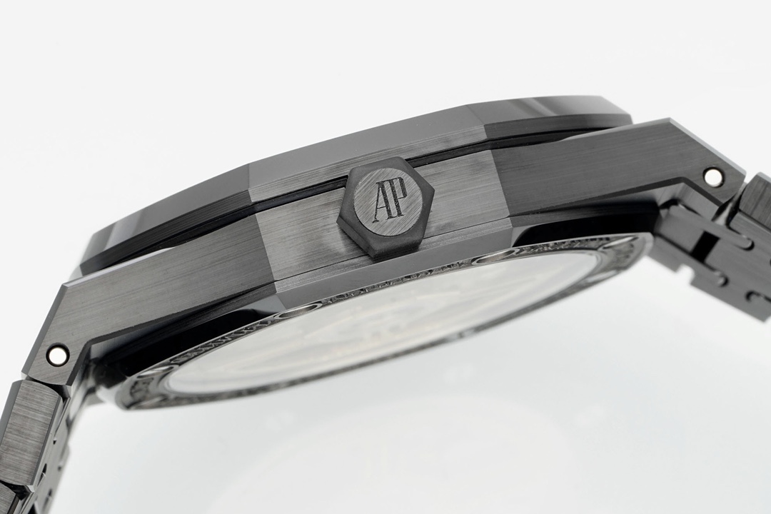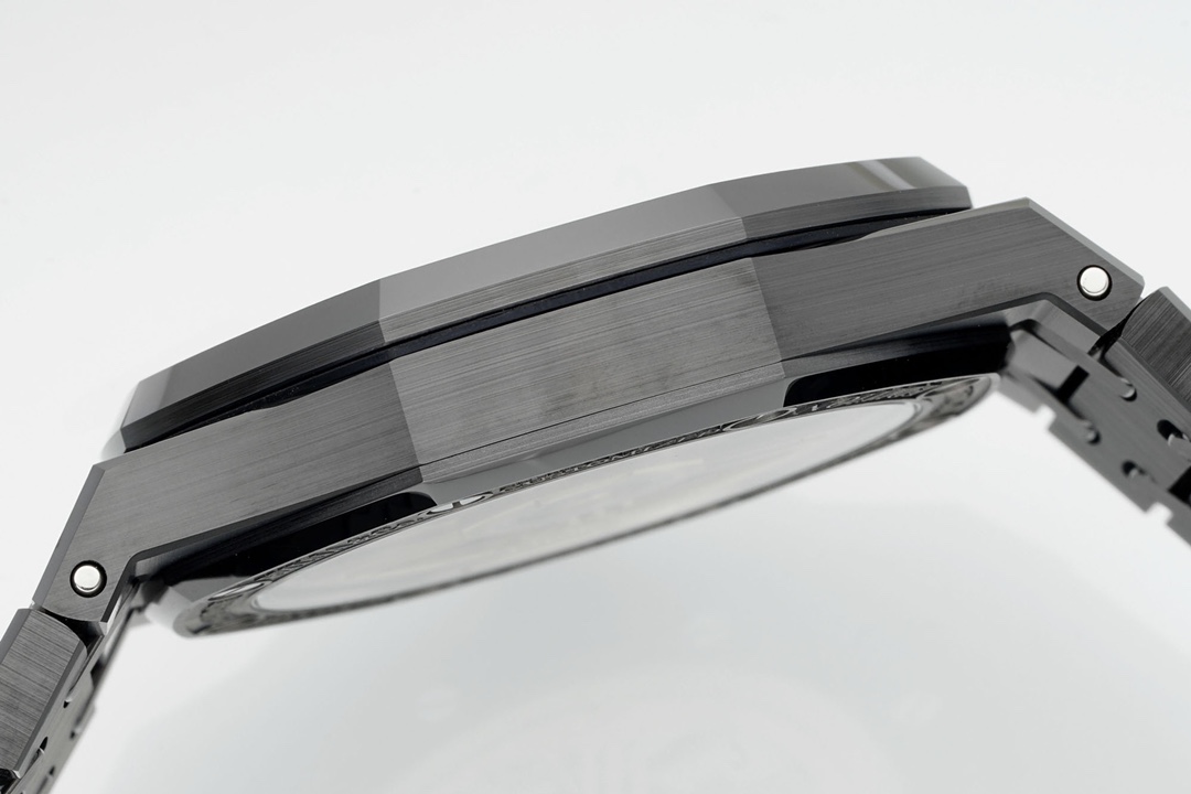 APSのクラフトマンシップへのこだわりは、時計のケースとブレスレットのシームレスな統合に現れています。オーデマ・ピゲの象徴的なロイヤルオークのデザインを踏襲し、15500は特徴的な八角形のベゼルと「タピスリー」テクスチャの文字盤を備え、セラミックによって現代的に再解釈されています。これらの部品を成形するためのセラミック焼結のプロセスは、精密な制御と低い歩留まりを要求し、APSの技術的な実力を証明しています。