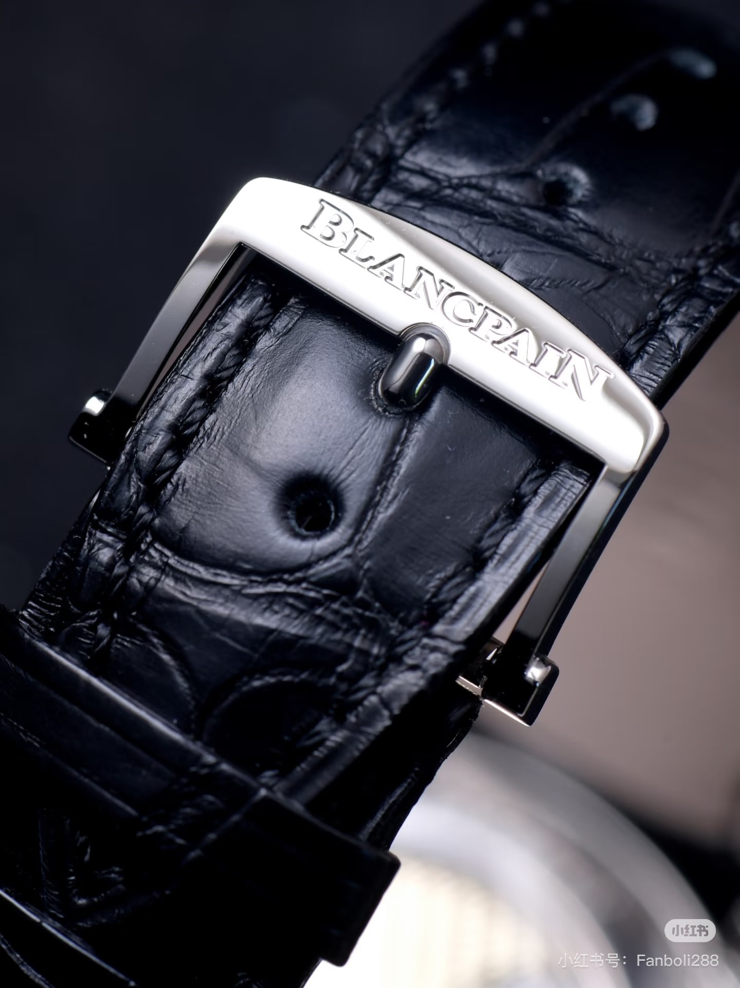 この時計の心臓部には、6654.5自動巻きムーブメントがあり、72時間のパワーリザーブを誇ります。このキャリバーは、便利さとデザインを調和させ、ラグに巧妙に埋め込まれた四隅の調整システムを統合することで、ブランパンの時計製造技術への献身を証明しています。このような革新は、複雑さが優雅さを犠牲にする必要はないという信念に挑戦し、熱心な時計愛好家に支持されています。