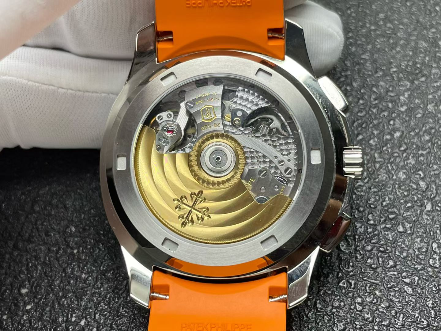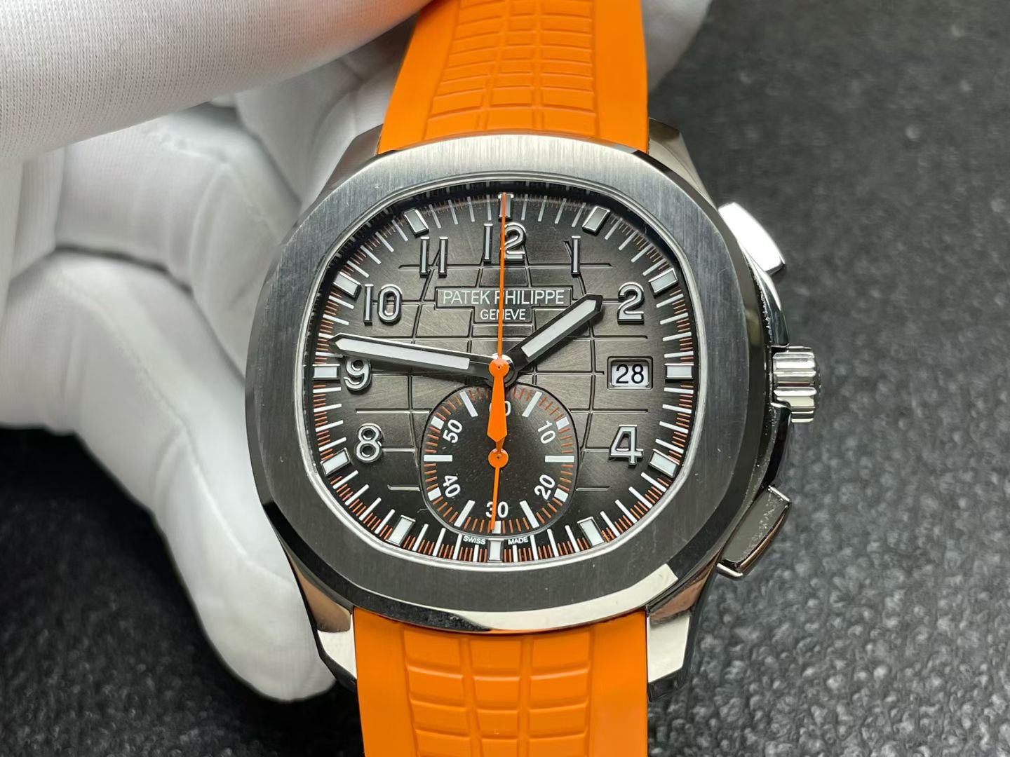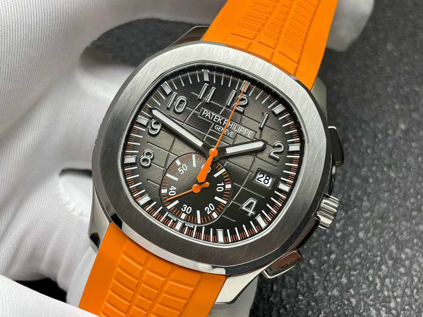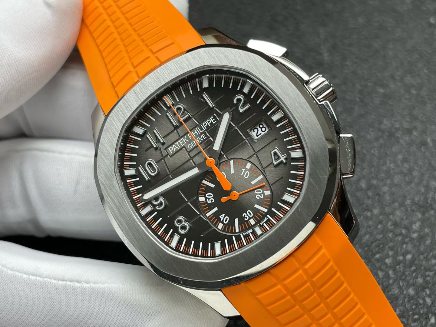 シリーズの中でも特に注目されるのが、5968A-001です。ステンレススチールのケースと黒い文字盤、鮮やかなオレンジのアクセントを組み合わせています。忠実な顧客への感謝の意を込めて、このモデルには追加のオレンジのラバーストラップが付属しており、個性と多様性を示しています。鮮やかなオレンジのディテールは容易に識別でき、非常に人気があります。