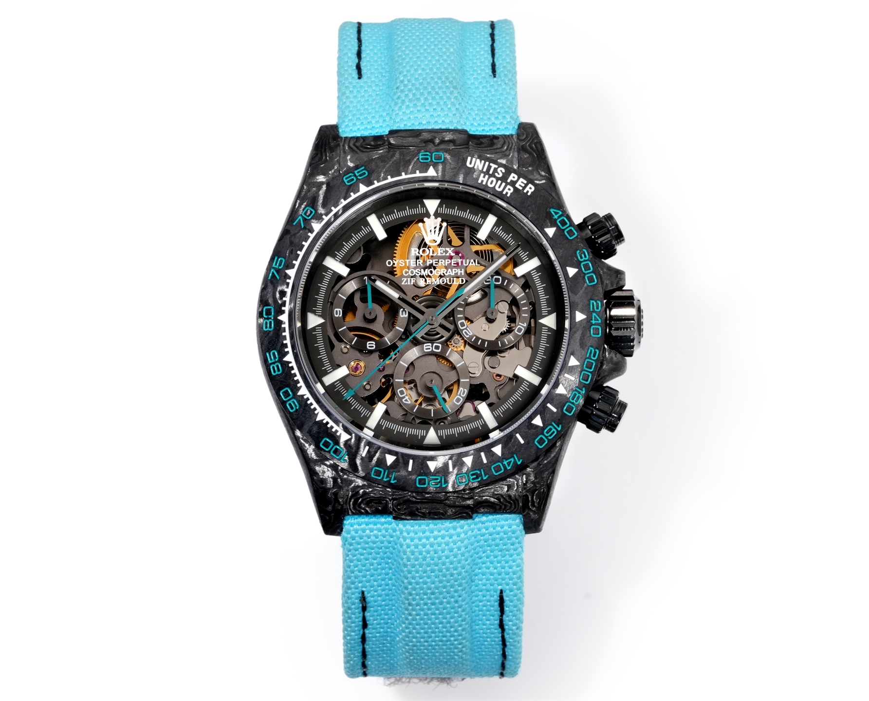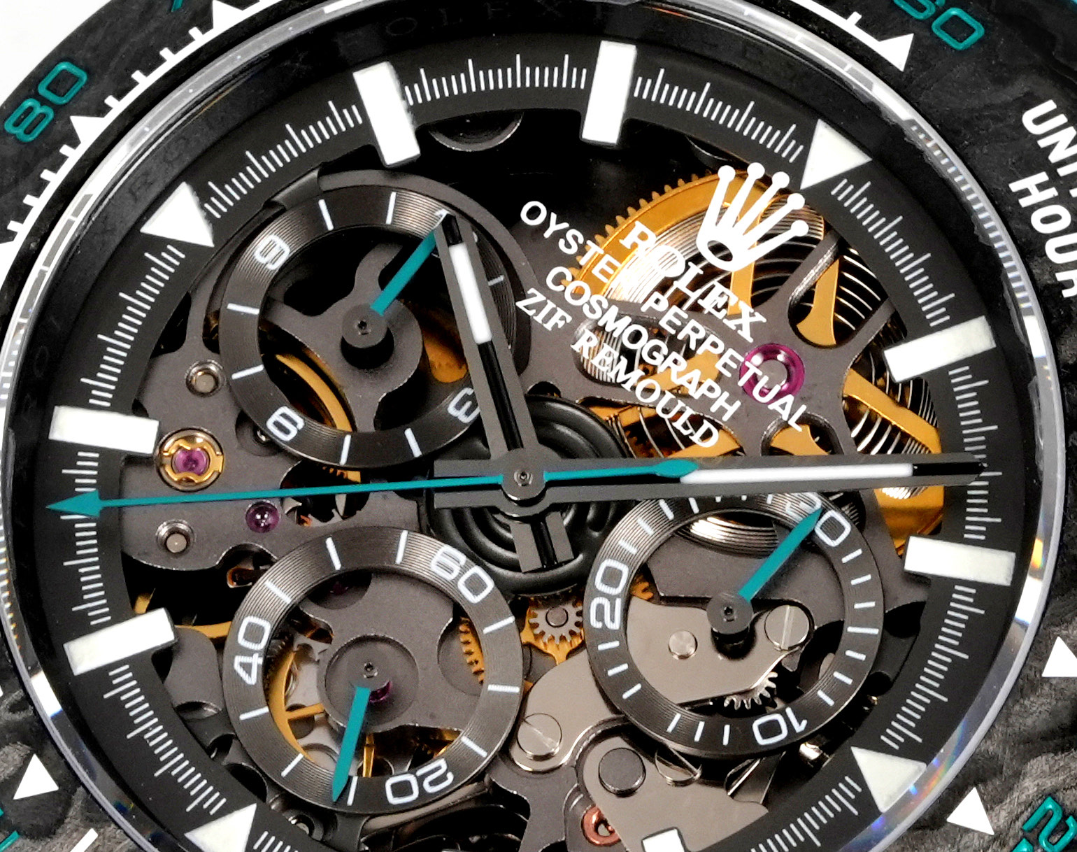 このモデルの中心には、精度と耐久性で知られる上海製の最新4130スケルトンムーブメントが搭載されています。そのエンジニアリングは、正規のロレックスデイトナに見られるムーブメントの能力を反映しており、高性能な時計製造技術の再現においてレプリカメーカーが達成した進歩を示しています。この精密な再現プロセスは、高価なラグジュアリー時計を購入する際の経済的および倫理的な意味合いについての疑問を投げかけます。