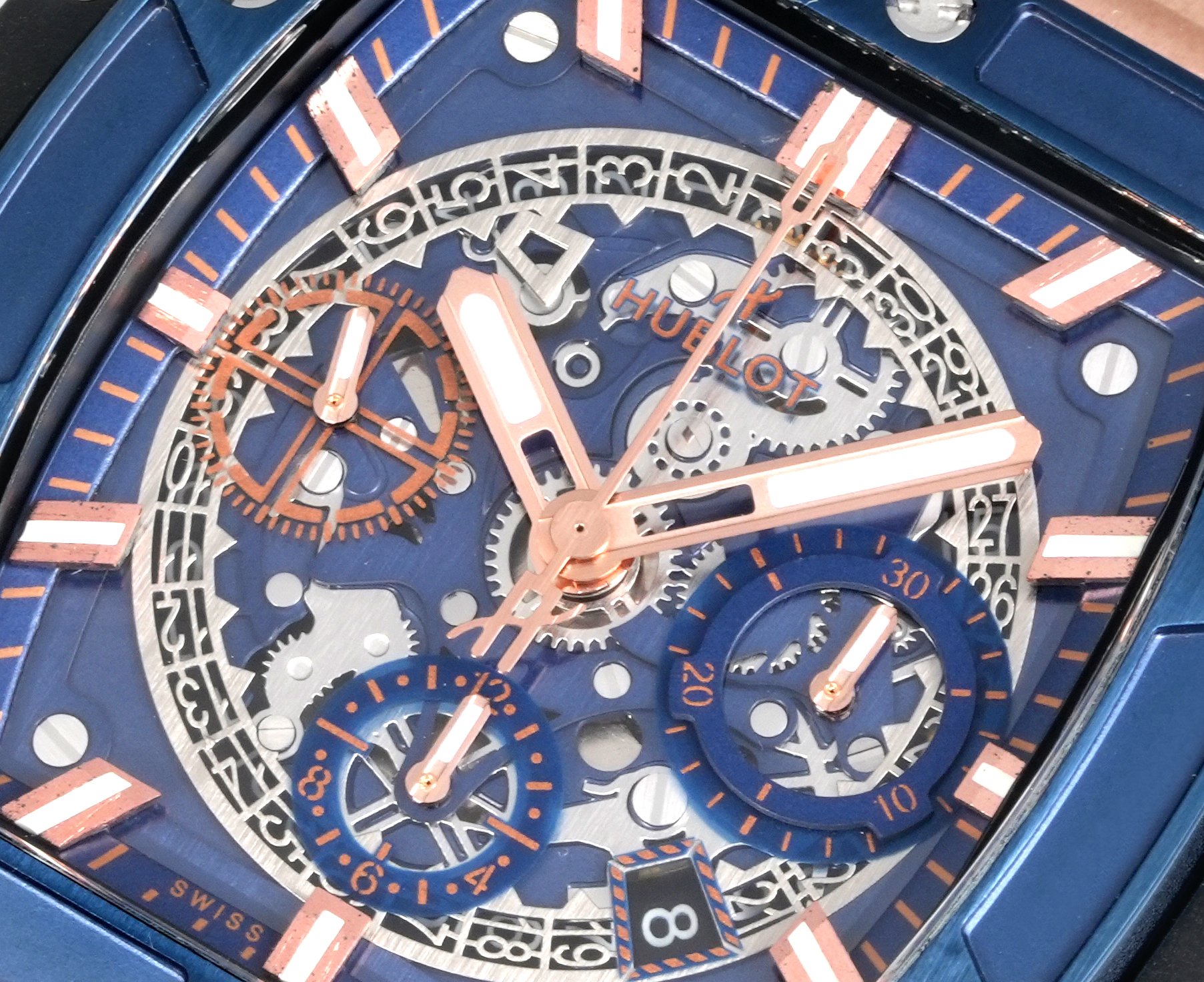 この時計の中核には、精密さと排他性を求めて巧妙に再現されたHUB4700ムーブメントがあります。このムーブメントはウブロの時計技術の進歩への絶え間ない追求を表し、ブランドのクラフトマンシップへの献身を示しています。六つの独特なH型ねじで鍛造されたシームレスな “サンドイッチ” 構造は、美学と耐久性を兼ね備えた工学の驚異を示しています。