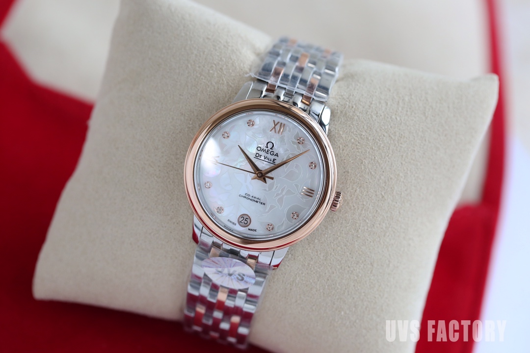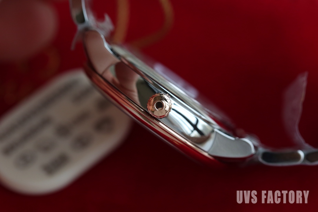 オメガ デ・ヴィルのレプリカのアップグレード版は、細部への驚くべき注意深さを示しています。まず、そのムーブメントから始まります。オリジナルのオメガ2500キャリバーと非常に一致するSeagull 2892ムーブメントを搭載しており、クラウンの中間位置の操作や日付調整の方向といった微細な機能を含んでいます。下方向に回転させると日付が右から左に変わるという特徴は、巧妙な工学技術を必要とし、UVSが追求する本物へのこだわりを反映しています。