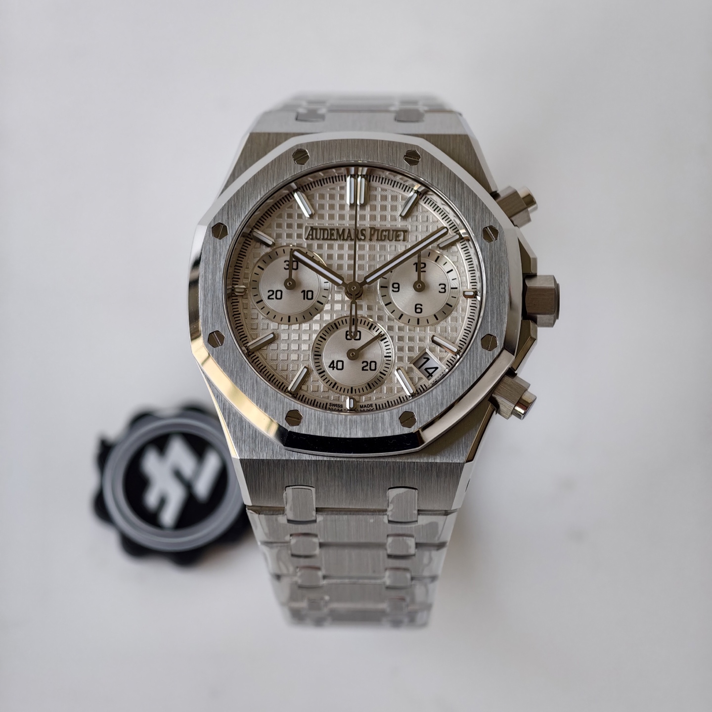 精巧に磨かれたステンレススチール製の一体型ストラップは、時計全体のテクスチャーとフォルムのテーマを反映しています。滑らかな面取りと柔軟な動きにより、ストラップは自然に手首の形にフィットします。APロゴが刻印されたフォールディングクラスプは、セキュリティと使いやすさを保証し、内部の微調整機構によりミリ単位でのフィッティングが可能です。このスタイルと機能の組み合わせは、単なる装飾品ではなく実用的なアクセサリーとしての役割を強調します。
