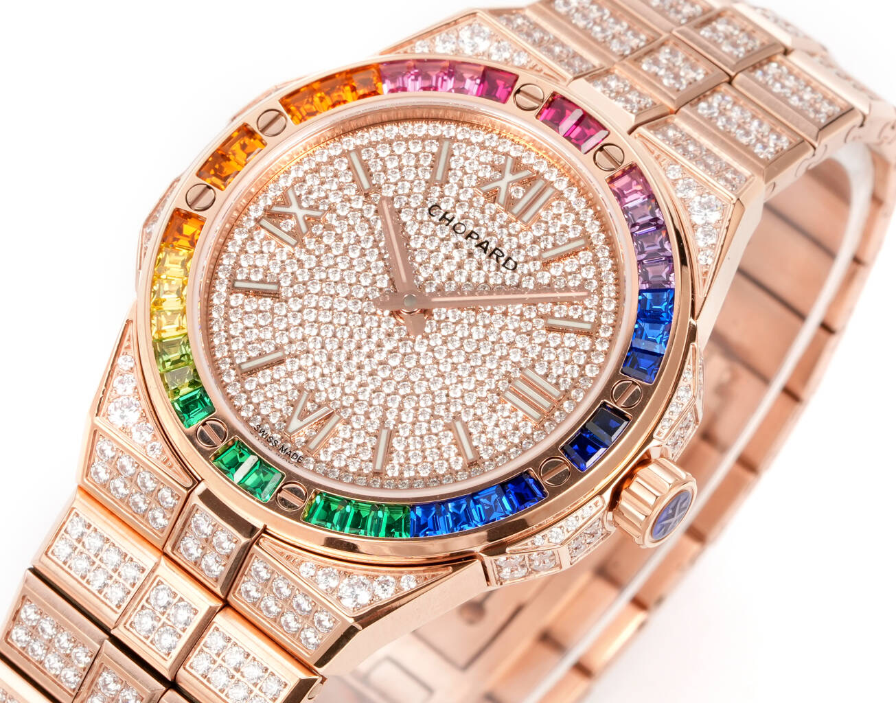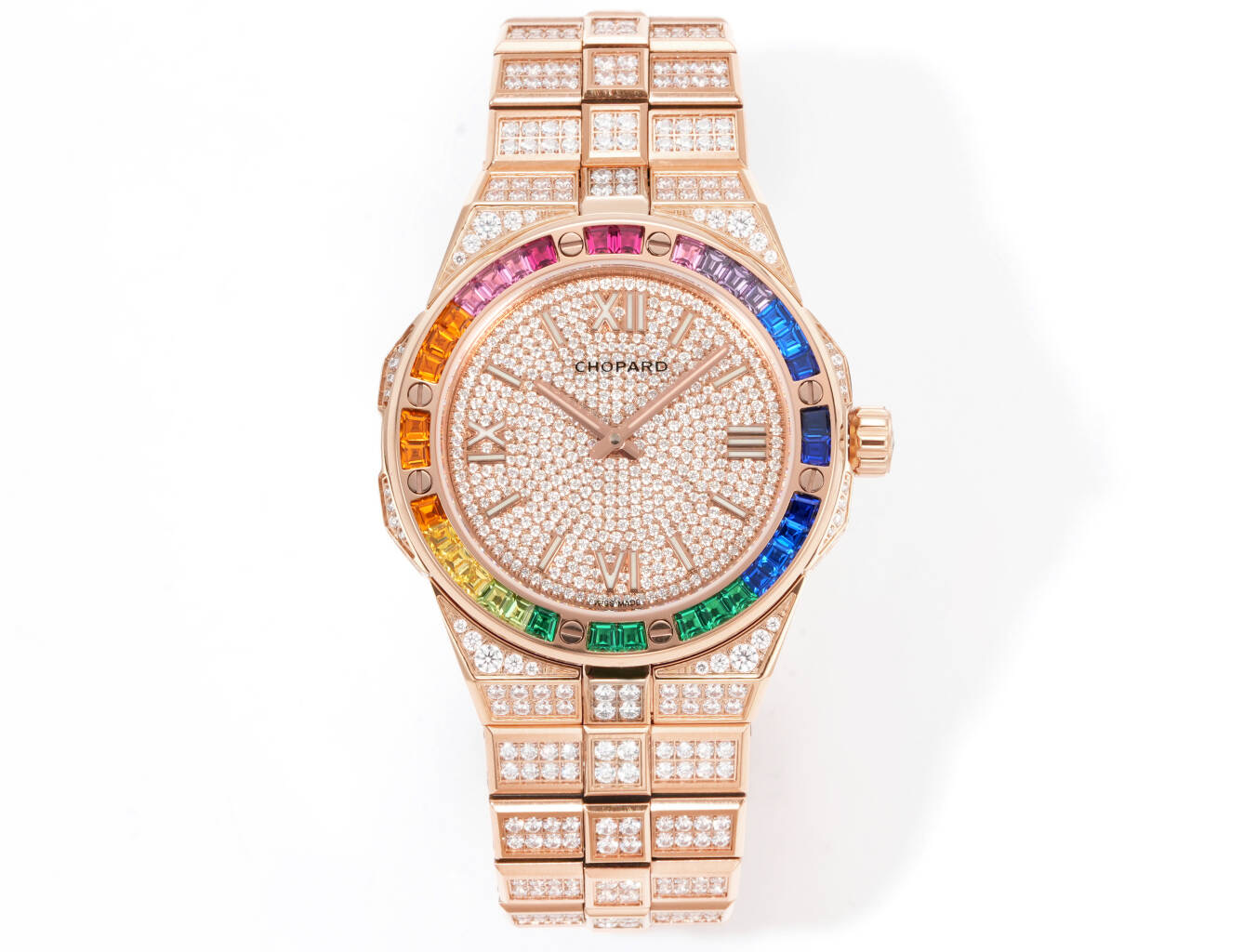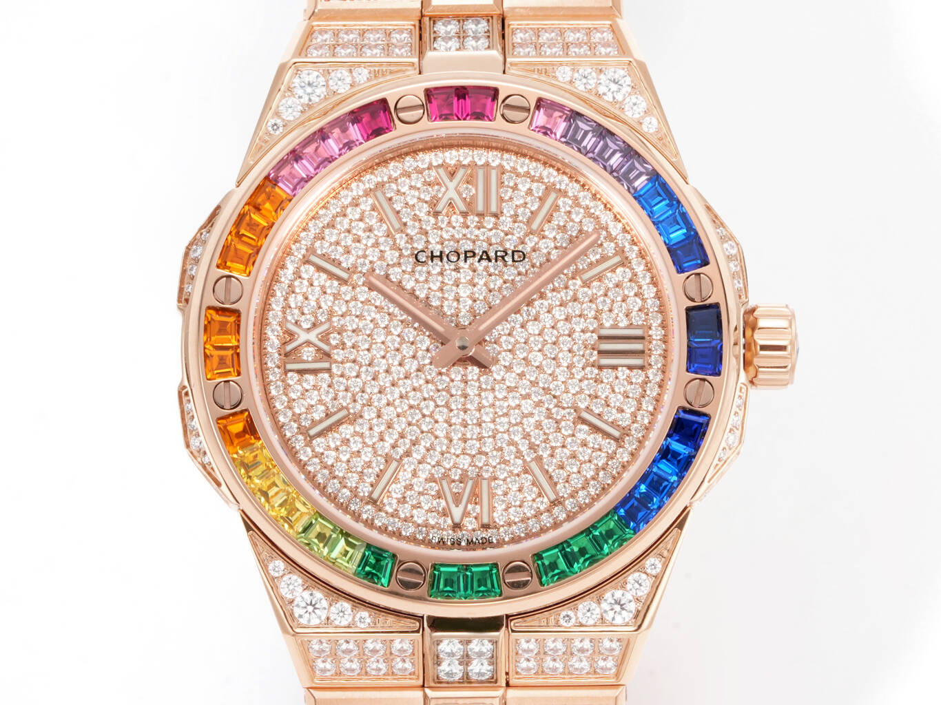 これらのタイムピースの中心には、改良された9015ムーブメントがあり、ショパール01.01-Cに変換されています。この選択は精度と信頼性へのコミットメントを反映し、ショパールの技術革新への献身を体現しています。ムーブメントは、日常生活の課題に応えながら、優雅さのタイムレスな象徴としての時計を作りたいという職人の願望を語っています。