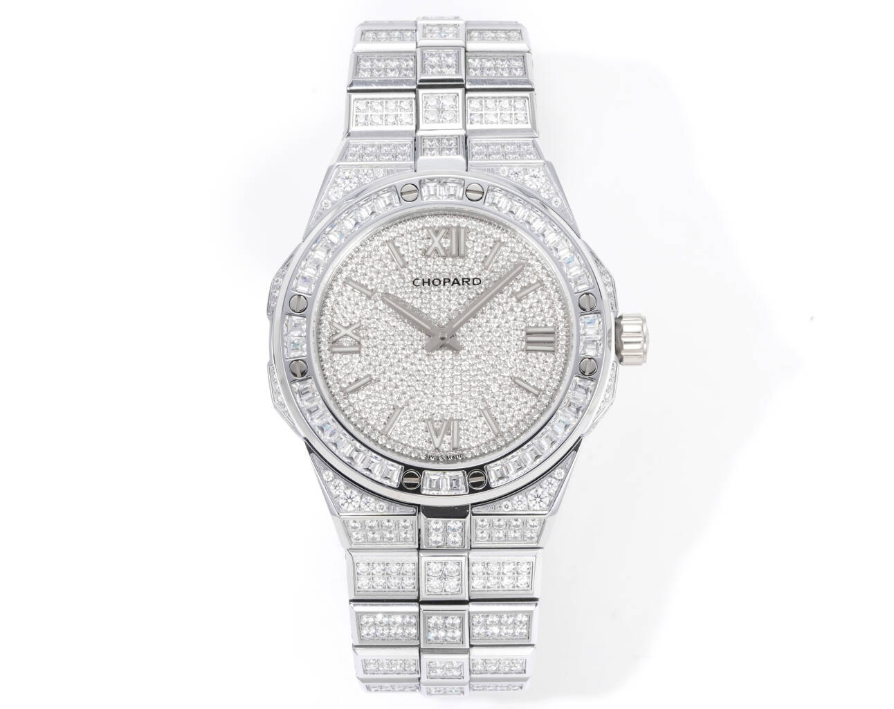 ショパールのアルパイン イーグルシリーズは、自然の風景の荘厳さを捉え、山々、川、夜空の静かな美しさからインスピレーションを得ています。これらの要素は、細かくカットされた宝石と岩模様の文字盤に命を吹き込み、ロジウムメッキされたローマ数字で飾られています。41mm x 9.7mmの本物のサイズを誇るこれらの時計は、ショパール独自の9015改造Chopard 01.01-cムーブメントを使用することで、精密さと細部へのこだわりを示しています。
