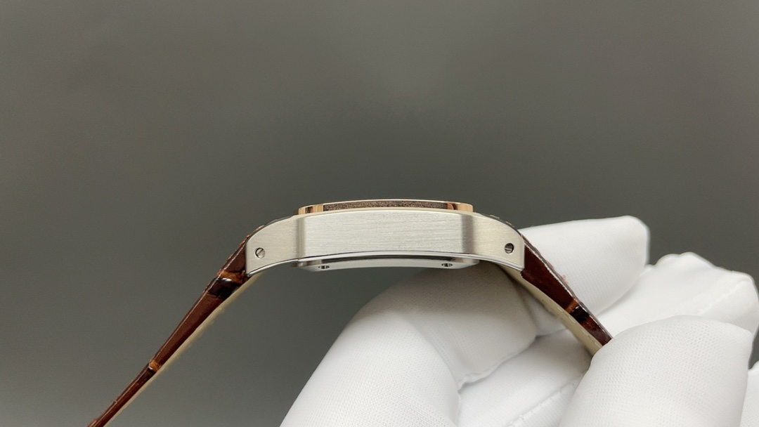 メンズとレディースの両モデルは、オリジナル仕様にほぼ忠実であり、メンズは51mm x 41.3mm、レディースは44.2mm x 35.6mmです。厚さわずか10.3mmは、カルティエがオリジナルの本物の感触を維持しつつ、現代の進歩を取り入れていることを示しています。