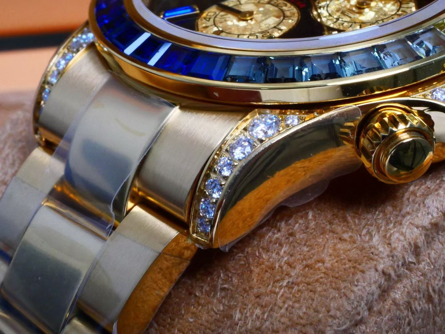 カスタマイズされた要素を収容しながらケースがその高級感を維持することを保証することは、RXモディフィケーションが優れているもう一つの分野です。ゴールドモデルは、ブレスレットとのシームレスな統合を確保するためのヘッドグレイン調整のための直角を含むケース改造を特徴としています。一方、ローズゴールドやホワイトゴールドのバージョンは、モアッサナイトダイヤモンドを収容するためのわずかに角度のある突起を組み込み、美的魅力を向上させながら一貫した高級グレードを維持します。