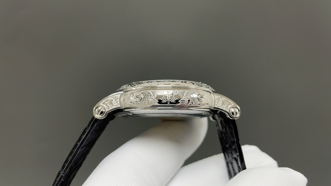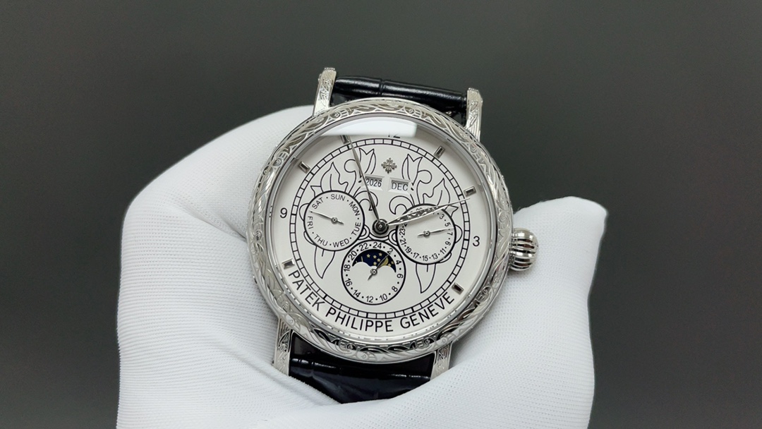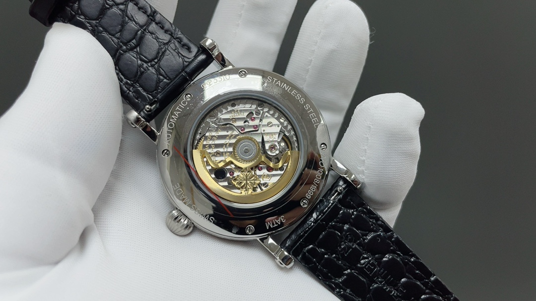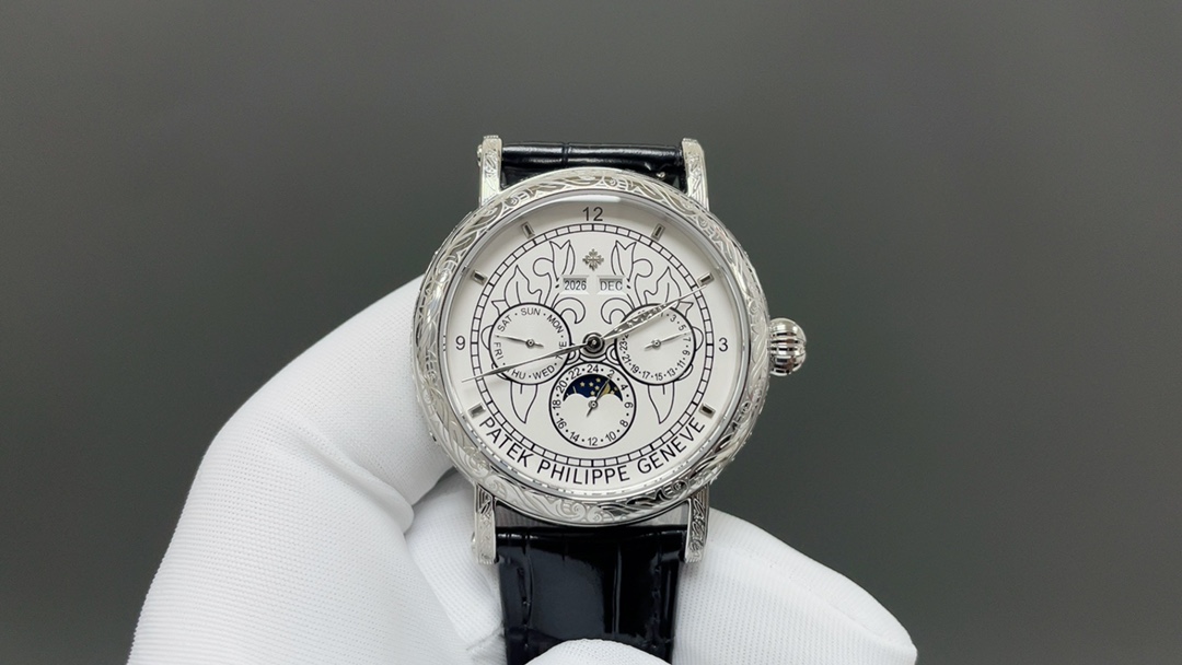 美学的には、この時計はヴィンテージの魅力と現代的な感性が融合した典型です。42mmのケースは、象徴的なカラトラバの彫刻が施されており、ビジネス会議からカジュアルな外出まで、幅広いシーンで男性の手首を引き立てます。この多様性は、耐久性と独特のテクスチャー仕上げを兼ね備えたクラシックなイタリアンカーフスキンレザーストラップによって強調されています。これに加えて、オリジナルを精密に模したパテックフィリップの有名なランタンバックルが組み合わされています。
