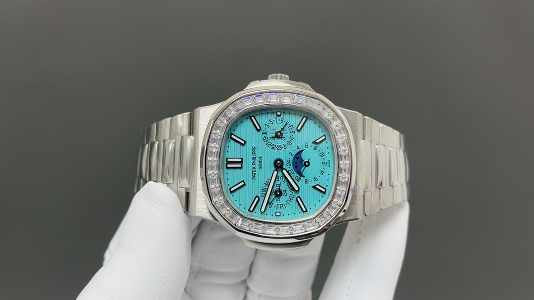美しい青の文字盤の下には、パテックフィリップのCal.240自動巻きムーブメントのレプリカ版が脈打っています。このムーブメントは薄型のプロファイルとブランドの特徴であるジャイロマックスバランスで知られています。期待に応えるだけでなく、それを超えるムーブメントを制作するというコミットメントは、細部への細心の注意に現れています。ここで「レプリカ時計」という用語が示すのは、模倣ではなく、機能と形状の本物の再現であり、パテックフィリップの革新と職人技への献身を反映しています。