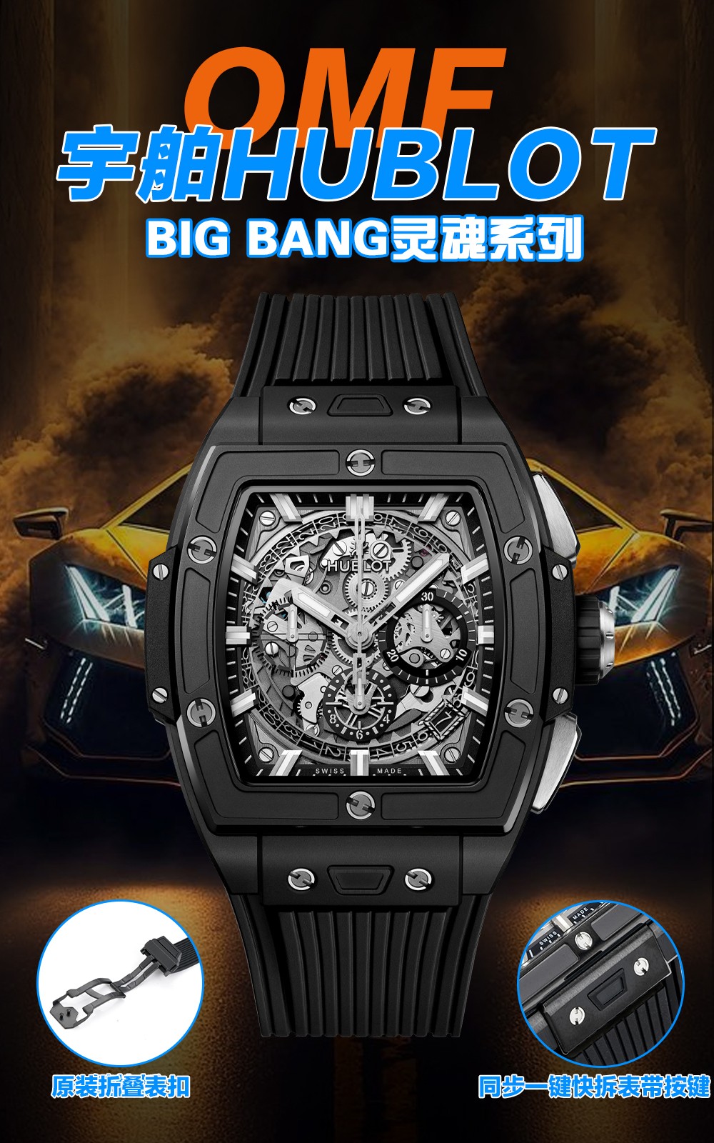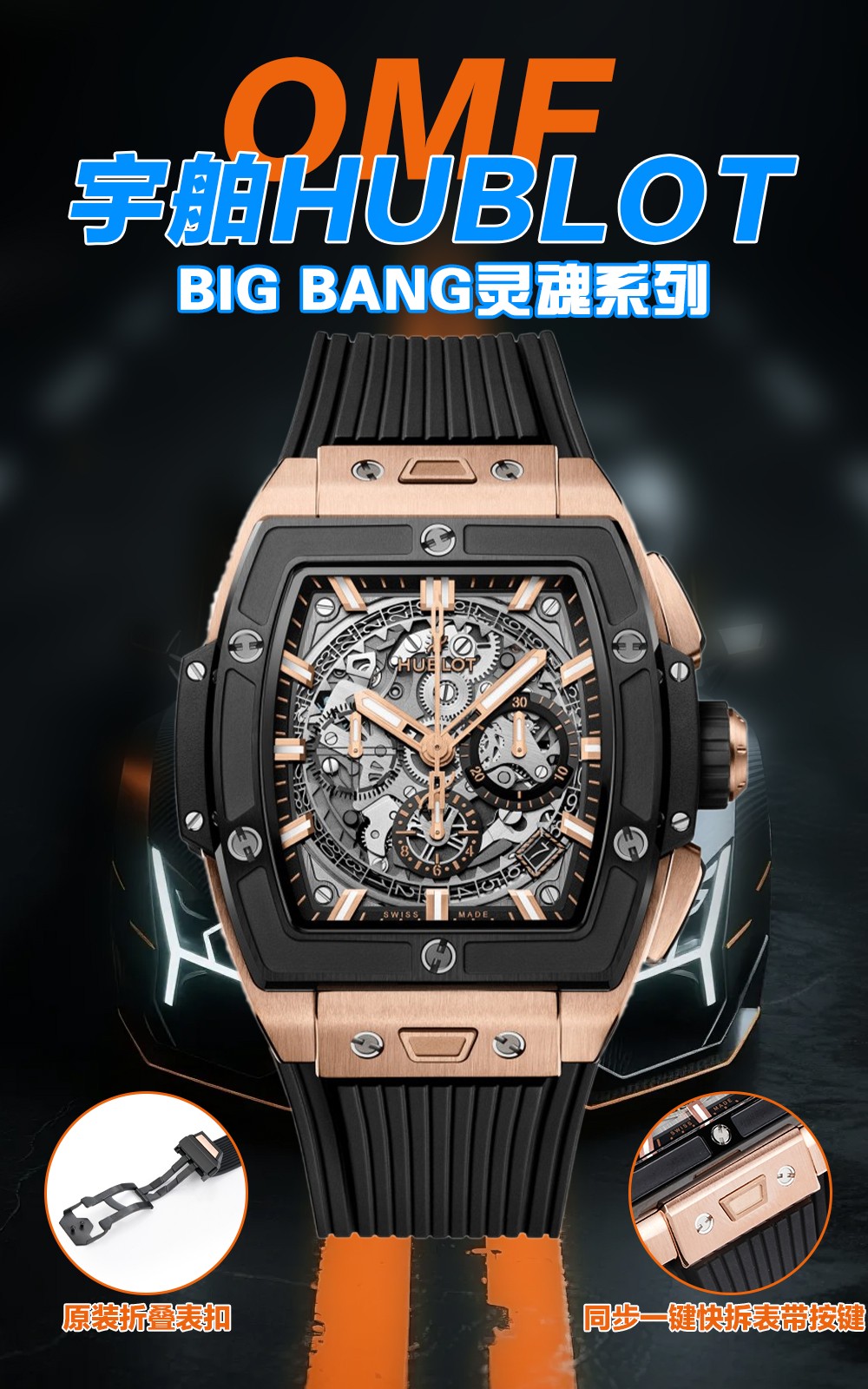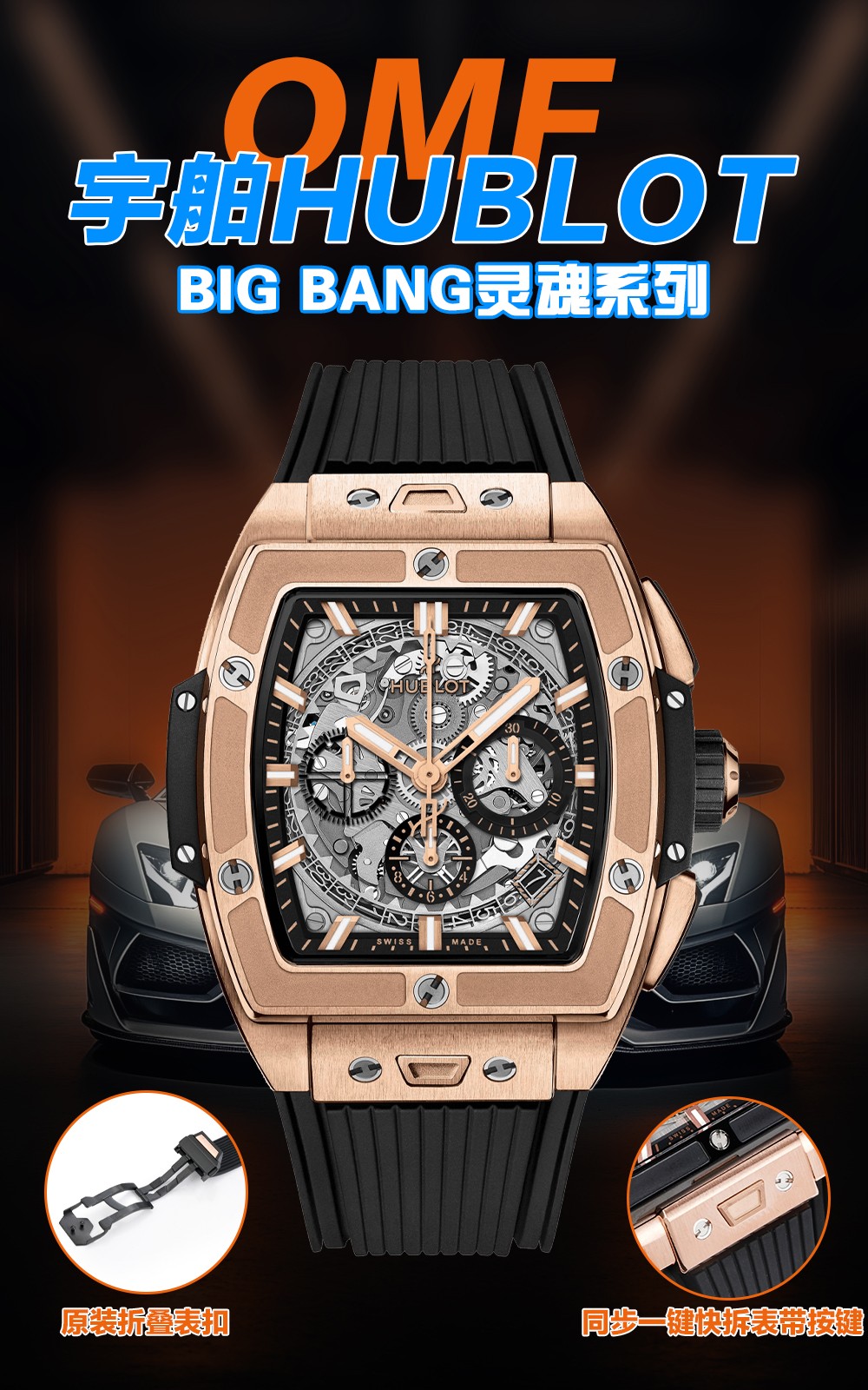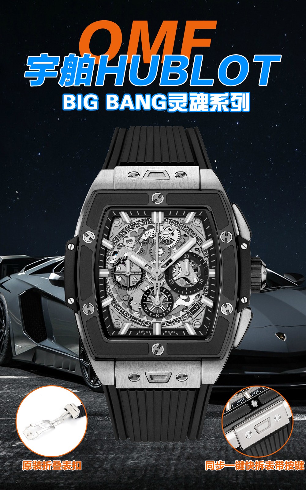 ウブロはユーザー中心のデザイン機能で革新を続けています。特注のフルオロラバーストラップを導入し、改良されたオリジナルのフォールディングクラスプで快適さと安全性を確保しています。さらに、「ワンクリック」ストラップ交換システムにより、ボタンを押すだけでストラップを簡単に交換できる前例のない柔軟性を提供します。この機能は、さまざまなスタイルやシーンに合わせて適応できる個人の価値を高めます。