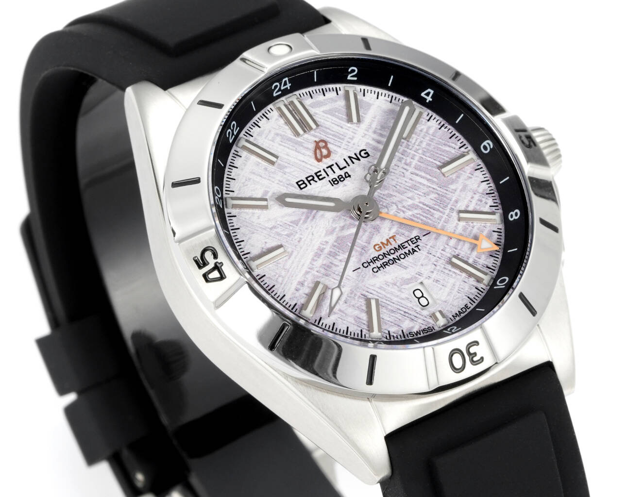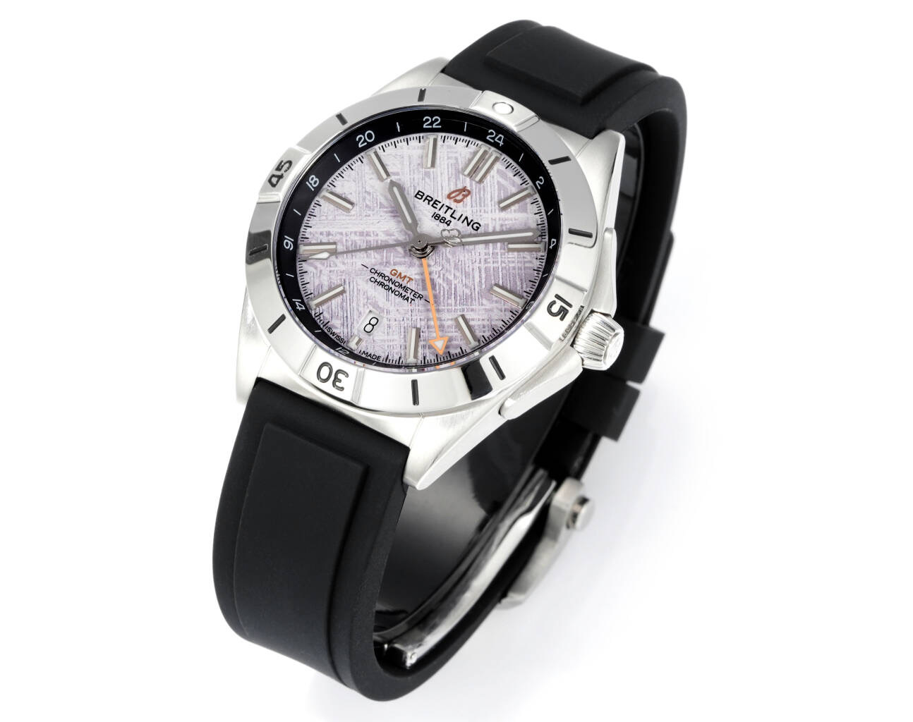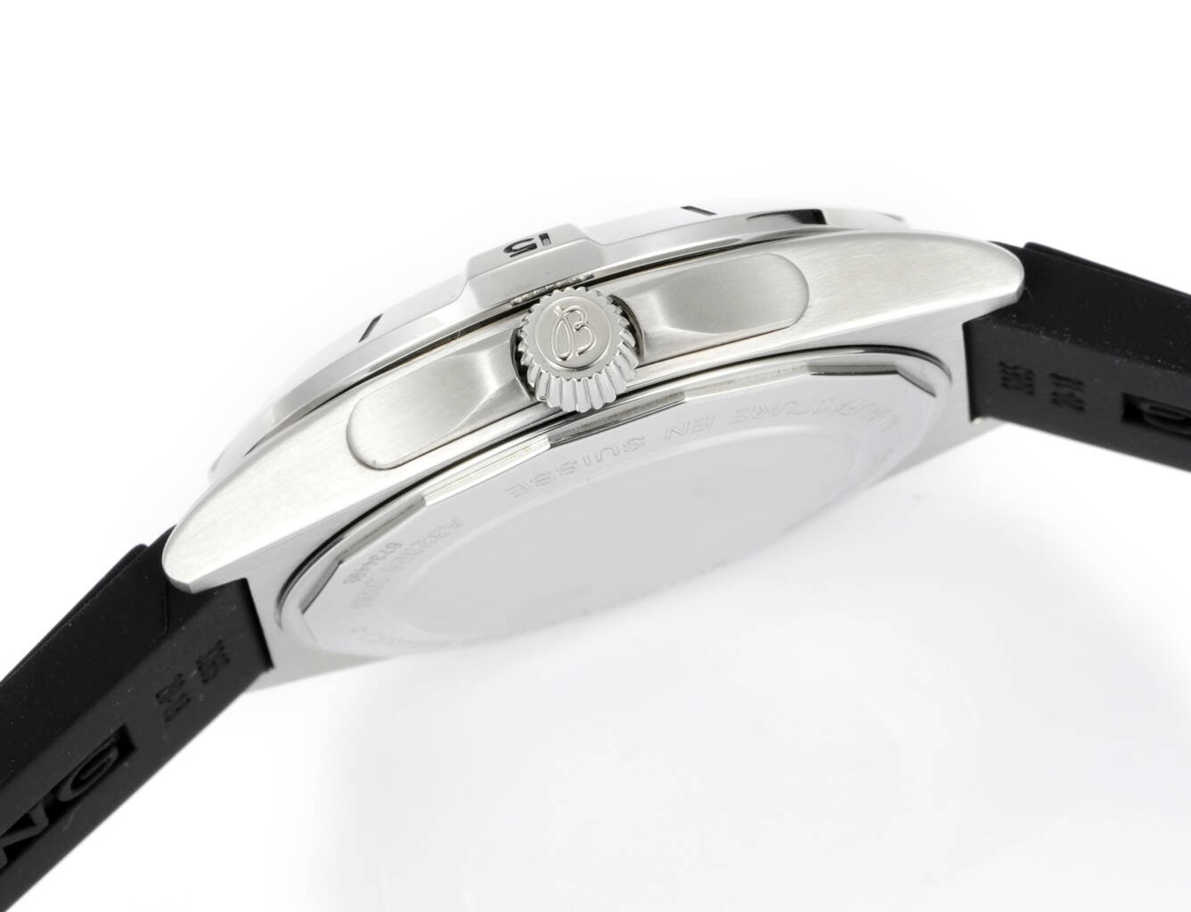 ラバーストラップを装備し、快適で実用的な装着感を提供します。ラバーストラップの柔軟性により、手首に自然にフィットし、特に移動の多い方には長時間の着用に最適です。40mmのケースサイズの選択は、西洋と東洋の手首サイズを考慮したデザイン理念に合致しており、ブライトリングのグローバルなデザイン感覚を示しています。