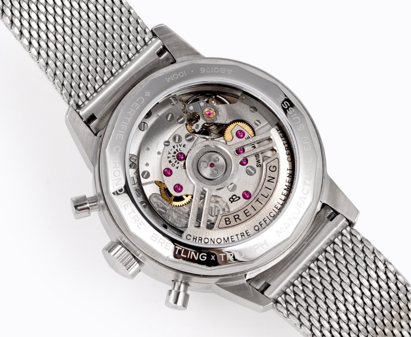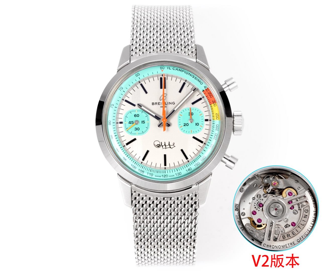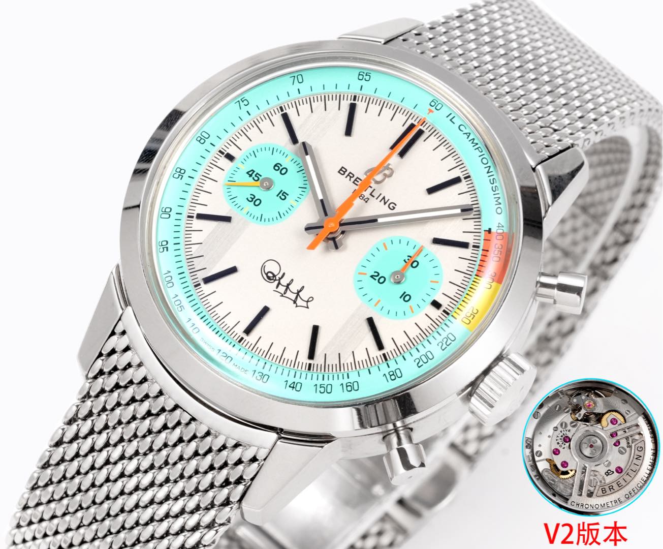 V2シリーズの魅力の中心には、独自のB01自動巻機械式ムーブメントがあります。その精度で知られるこのムーブメントは、ブライトリングの時計製造への献身を体現しています。その優れた職人技は信頼性を保証し、ブライトリングのクロノグラフラインの旗艦として時計を位置付けています。この技術的な卓越性は、精巧なエンジニアリングを評価する時計通の注目を集めます。