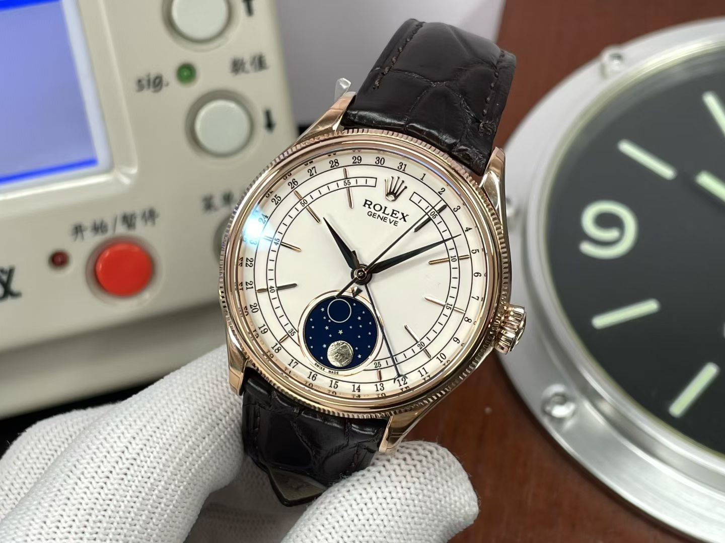 ロレックスはサブマリーナやデイトナのような頑丈なスポーツモデルで有名ですが、セリーニ ムーンフェイズは優雅さを洗練された形で提供することで異なります。ムーンフェイズ合併症の導入は、審美的かつ機能的な複雑さが重視された古典的な時計製造の原点への回帰を示しています。この時計は単なるジュエリーではなく、時計製造の卓越性を示すものです。