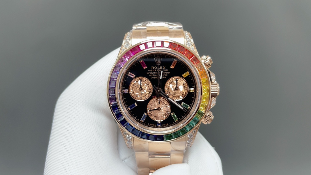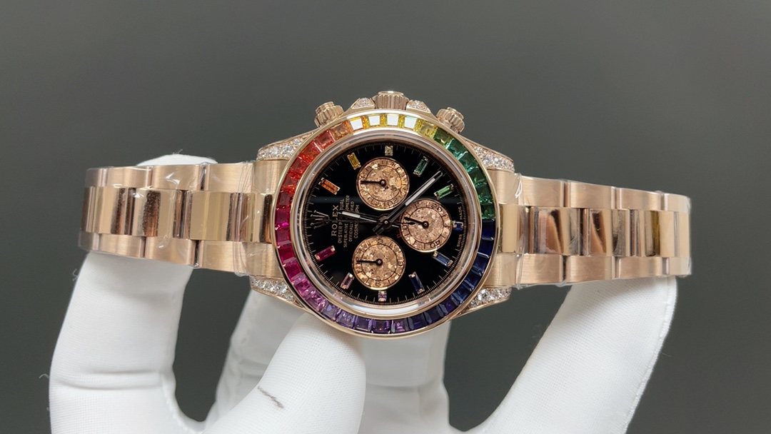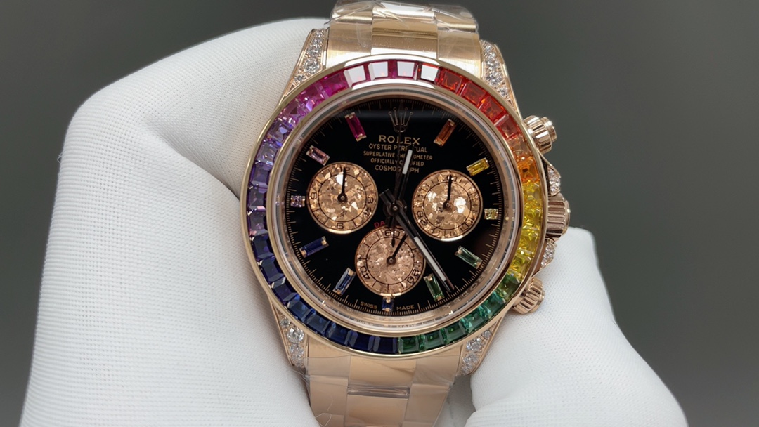 時計の世界において、ロレックス デイトナ レインボーほど華やかさと職人技を体現する時計はほとんどありません。もともと限定数で発売されたこの時計は、40mmのケースに多彩な宝石があしらわれ、コレクターやファッションアイコンたちの間で非常に人気があります。しかし、その魅力が増すにつれ、同様の美学をより低価格で提供するレプリカ時計の市場も拡大しています。ここで興味深い話題となるのが、7750丹東ムーブメントを搭載したロレックス デイトナ レインボーのレプリカです。これはそれ自体が注目に値する創造物です。