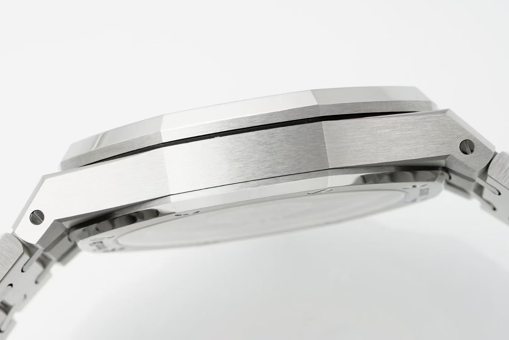 AP 15510レプリカは、ロイヤルオークの構造の複雑さを恐れません。その格子状のワッフルパターンはオリジナルと同様に立体的で均一であり、レプリカ時計製造の境界を押し広げています。レーザーで刻まれたカレンダーウィンドウや完璧に磨かれた六角形のネジを特徴とし、このレプリカの各コンポーネントは、通常は高級時計にのみ見られる厳格な職人技を体現しています。