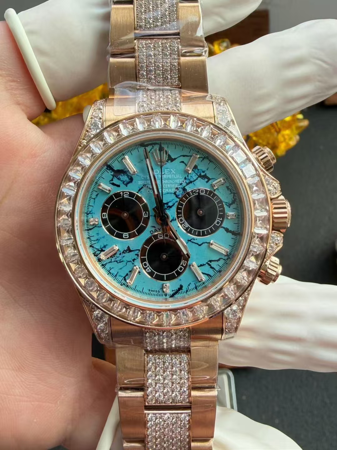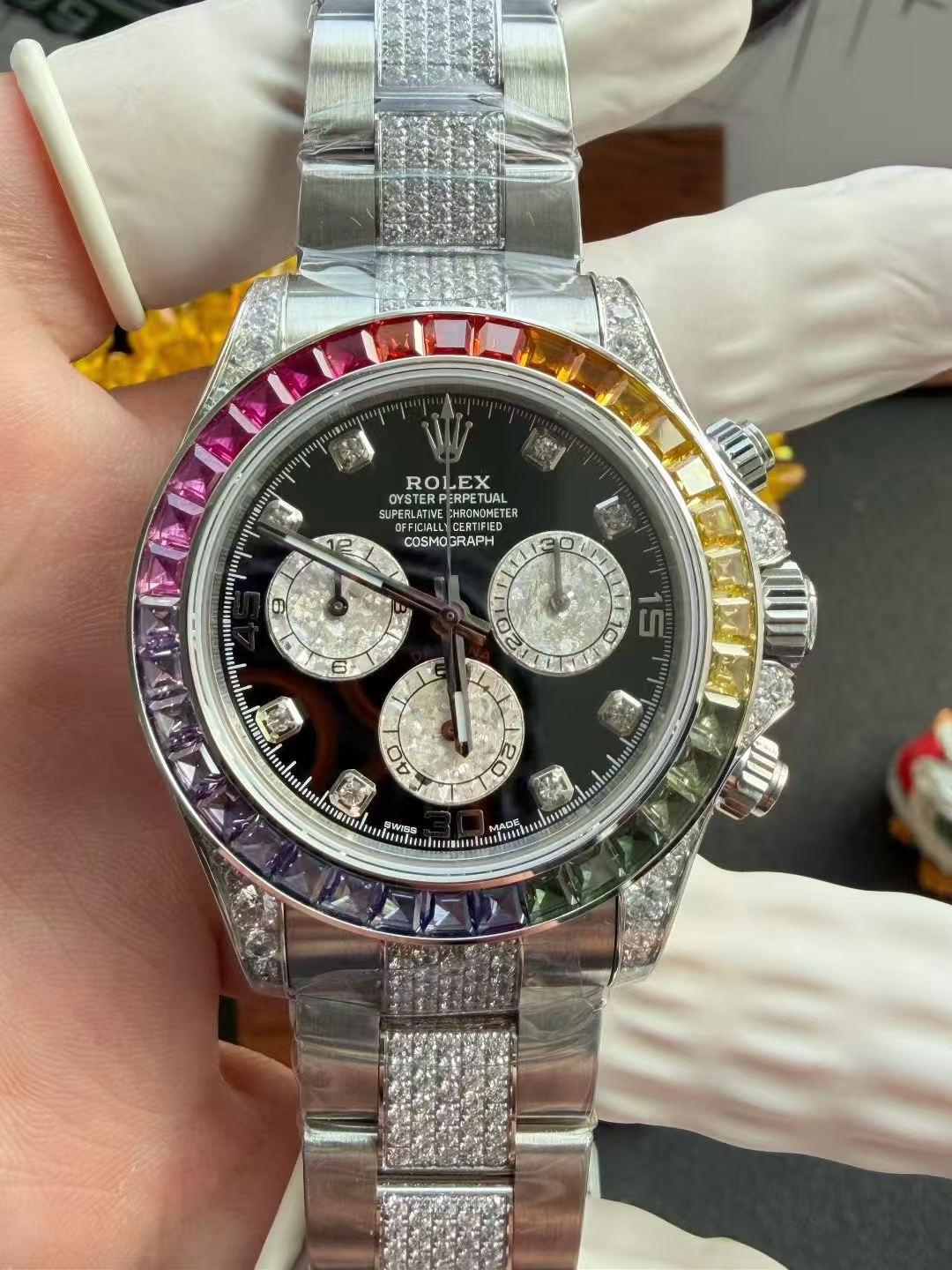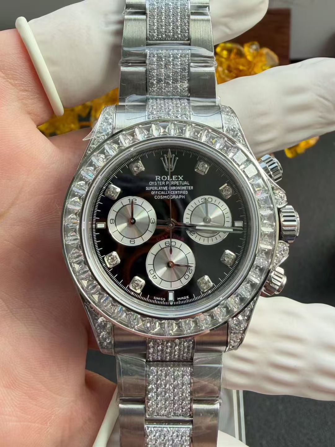 高級時計の本質はしばしば伝統と職人技にあります。PPM改良デイトナは、ロレックスデイトナの象徴的なデザイン哲学に根ざしながらも、合成宝石の使用を通じて新たな視点を導入しています。ラボで育成されたダイヤモンドは、化学的には天然のものと同一ですが、先進的な技術プロセスを通じて作られ、従来の高級品の基準に挑戦する持続可能な代替品を提供しています。