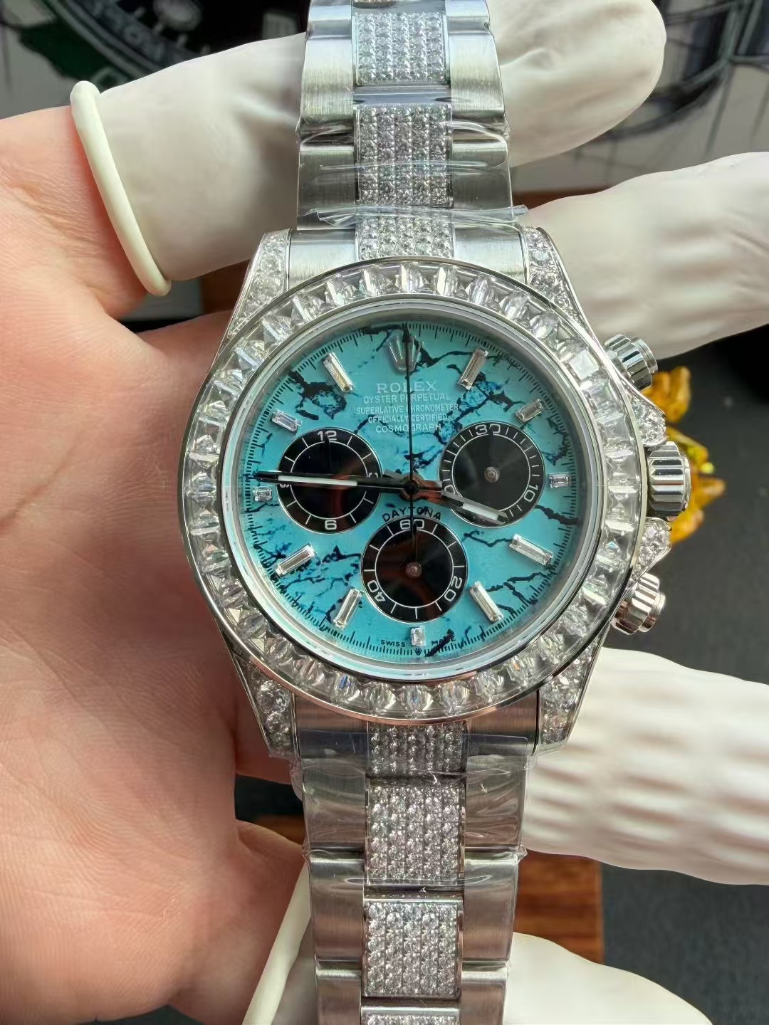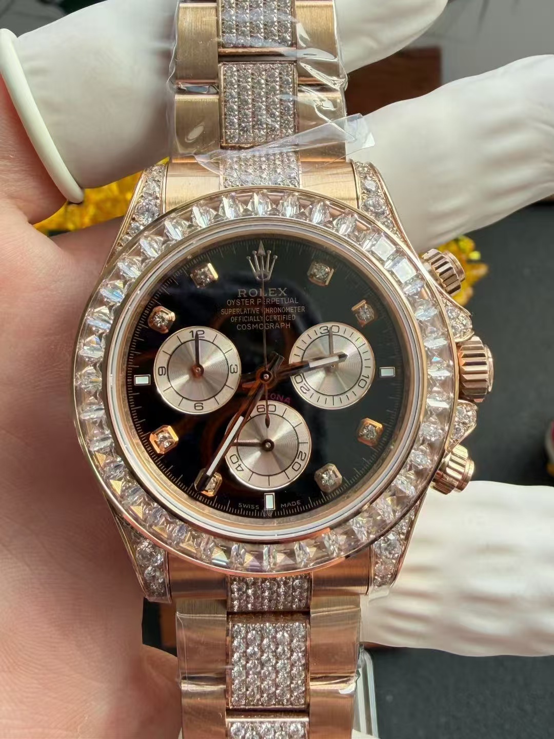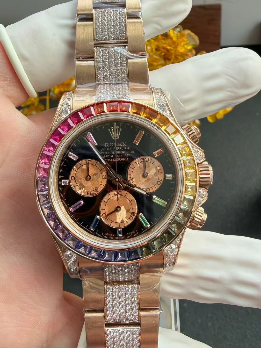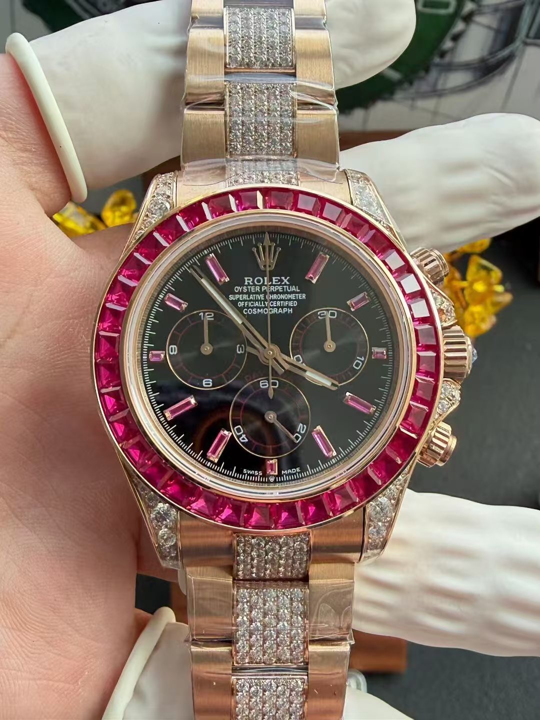 高級時計の本質はしばしば伝統と職人技にあります。PPM改良デイトナは、ロレックスデイトナの象徴的なデザイン哲学に根ざしながらも、合成宝石の使用を通じて新たな視点を導入しています。ラボで育成されたダイヤモンドは、化学的には天然のものと同一ですが、先進的な技術プロセスを通じて作られ、従来の高級品の基準に挑戦する持続可能な代替品を提供しています。