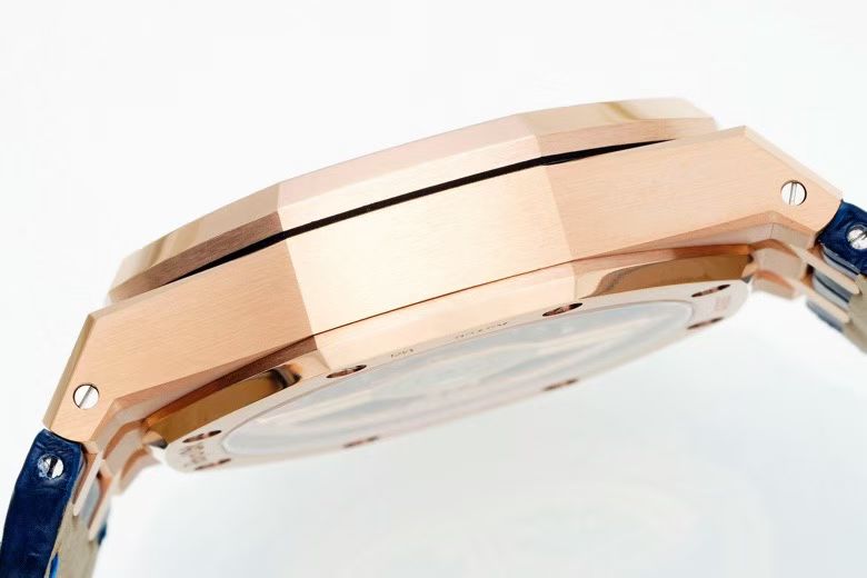 ダンドン工場のようなレプリカ時計メーカーは、模倣の技術を驚くべきレベルまで磨き上げています。特にAPロイヤルオークの26240モデルのレプリカは、オリジナルの細部を模倣するための彼らのこだわりを示しています。コラムホイールデザインと6.8mmという薄さを誇るこのレプリカのムーブメントは、オリジナルの安定化機構を模倣した調整によって精度を実現しています。この細部へのこだわりは、ロイヤルオークの象徴的な文字盤にまで及び、ロゴの各文字はオリジナルを鏡のように再現するために精密に彫刻されています—特に’A’と’E’の微細な斜めのラインまで。