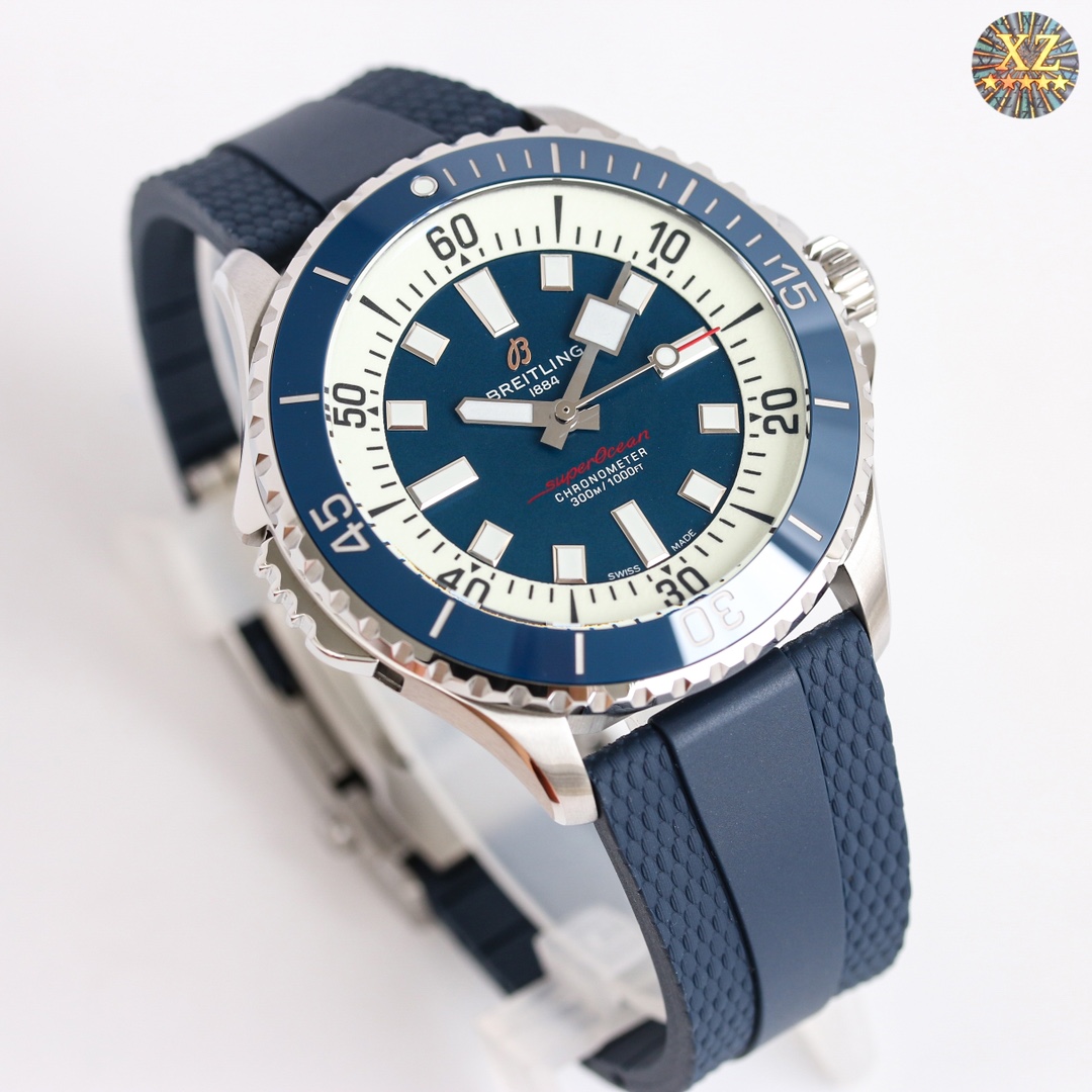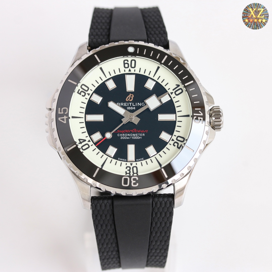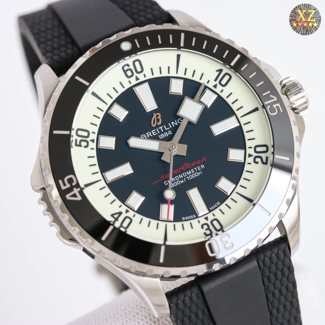 伝説的な「スローモーション」デザイン言語を取り入れたSuperoceanシリーズは、その象徴的な美学を維持しつつ、セラミックインレイベゼルや鮮やかな文字盤色などの現代的な要素を導入しています。太い針とマーカーに施されたSuper-LumiNova®の蛍光塗料は、水中での優れた視認性を保証し、実用性とスタイルへのブランドのこだわりを示しています。