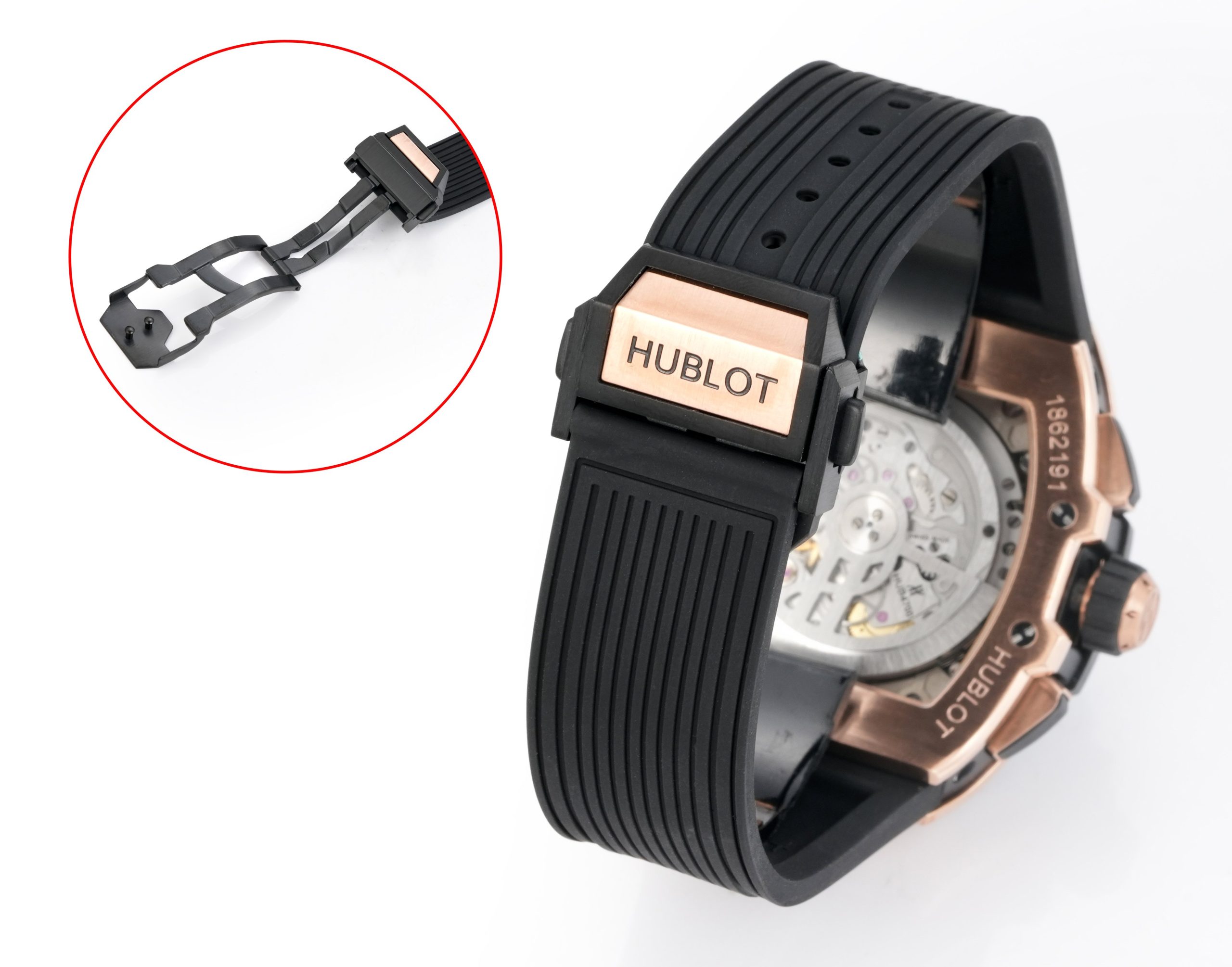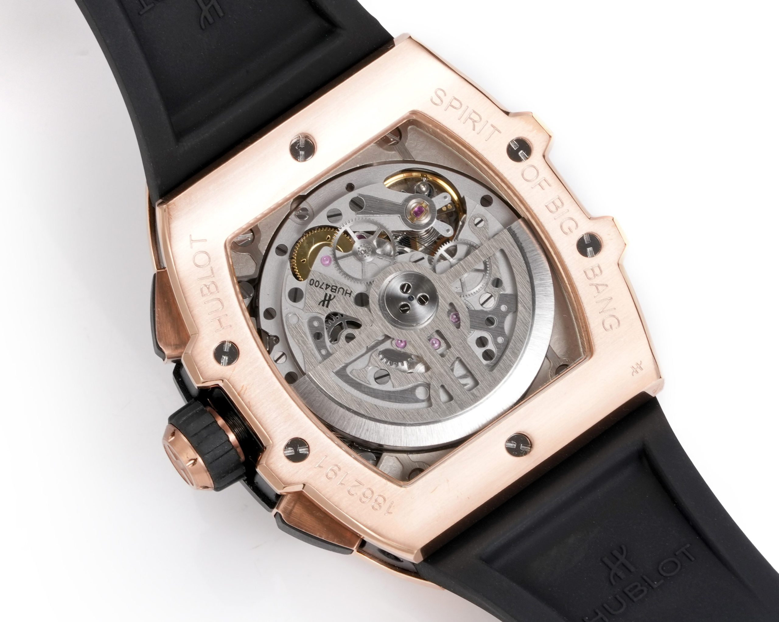 この時計の中心には、特別にカスタマイズされたHUB4700ムーブメントがあり、このバージョンのために精緻に再現されています。このムーブメントは、その精度と信頼性で知られており、ウブロの技術的卓越性への献身を示すとともに、モータースポーツからインスパイアされながらも日常的な実用性を維持しています。