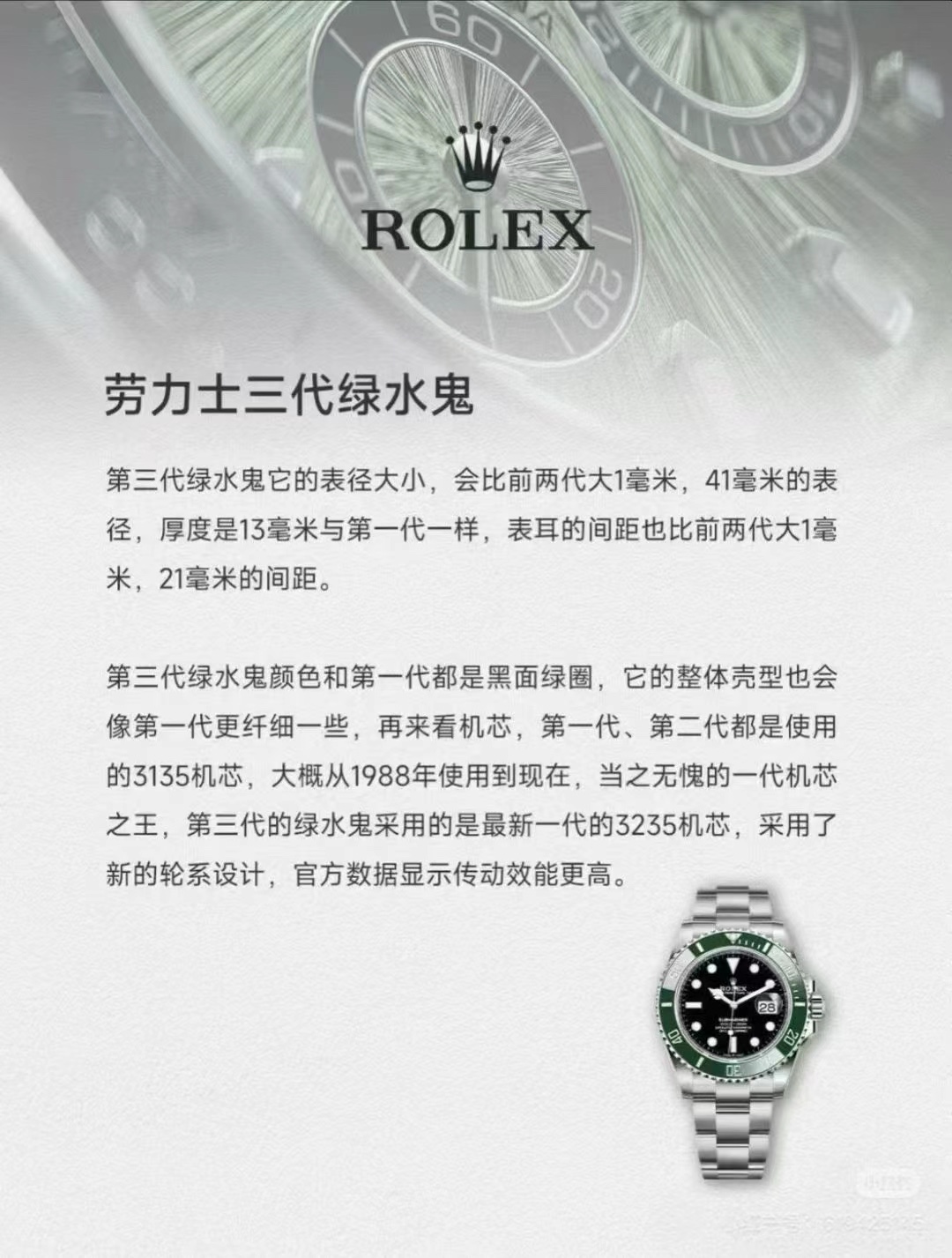 高級時計の世界では、ロレックス サブマリーナー、愛好家の間で「グリーンサブ」として親しまれている時計ほど多くの興味と欲望を引き起こすものはほとんどありません。ARFの最新作、第4世代グリーンサブマリーナーのリリースにより、この魅力は新鮮で若々しい活力を得て復活し、名高い伝統に敬意を表しながらも、現代のデザインと精度の限界を押し広げています。本記事では、このモデルの微妙なアップグレードを掘り下げ、レプリカ時計市場への広範な影響を解き明かします。