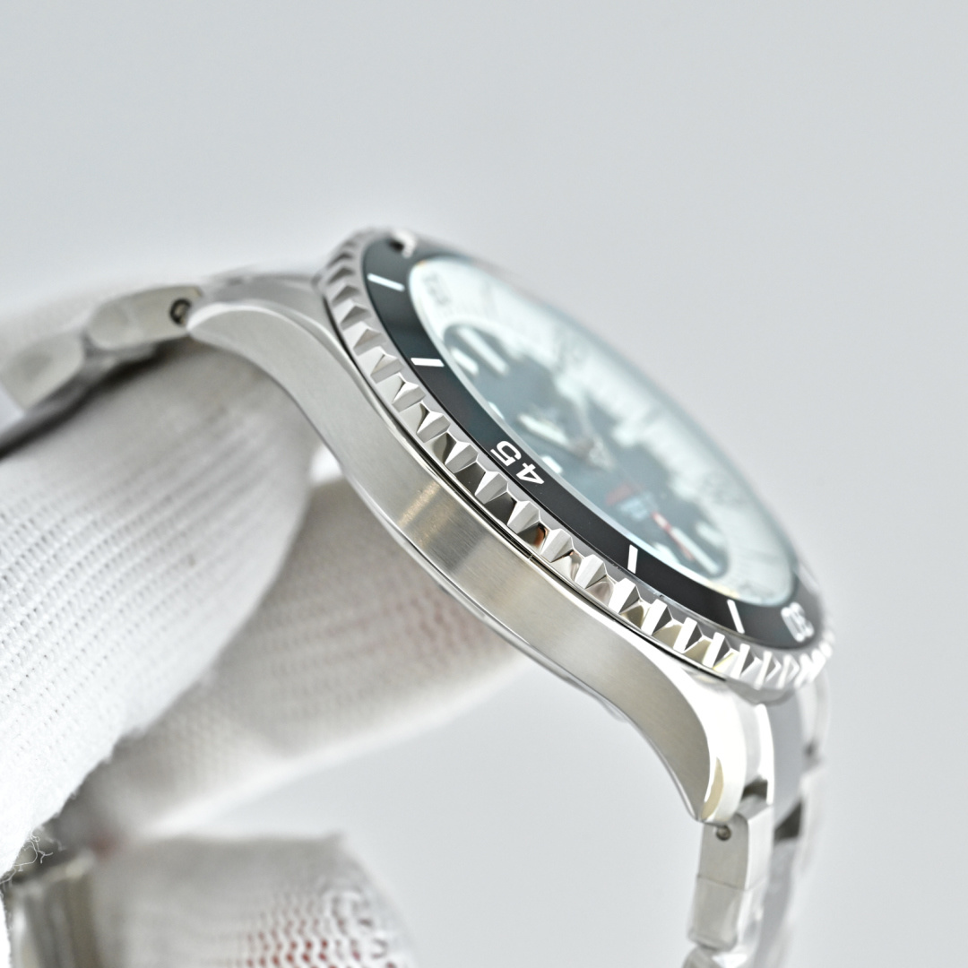 SuperOceanシリーズは、個性豊かなパーソナライズオプションを提供することに躊躇しません。ダイアルロゴ、ベゼルマーカー、インデックスは純度を追求して作られており、鮮やかなダイアルカラーが際立ちます。色とりどりのセラミックベゼルやダイアルオプションを備えたこの時計は、個性を大胆に表現する機会を提供します。