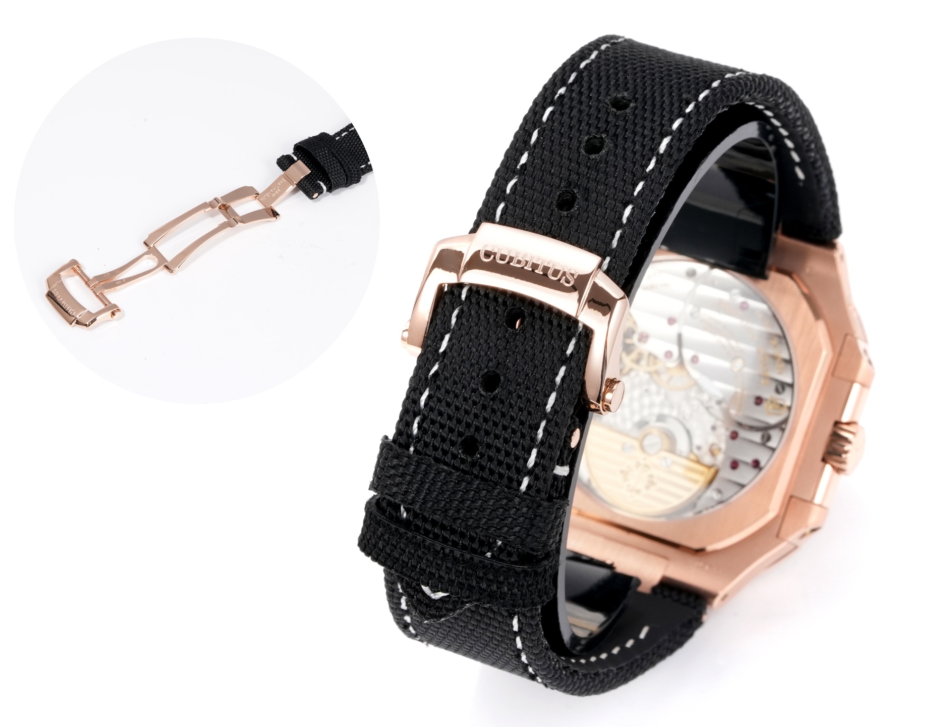 Cubitus 5822P-001は、その印象的な45mmケースで際立っています。これは控えめな高級感の伝統的な規範に挑戦する大胆な選択です。このサイズは、手首での存在感を示すだけでなく、文字盤の視認性を高め、形と機能の両方を重視する愛好家にアピールしています。この時計は、信頼性と精度で知られるCaliber 240 PS CI J LUムーブメントによって駆動され、P1 FACTORYの工学的卓越へのコミットメントを強調しています。