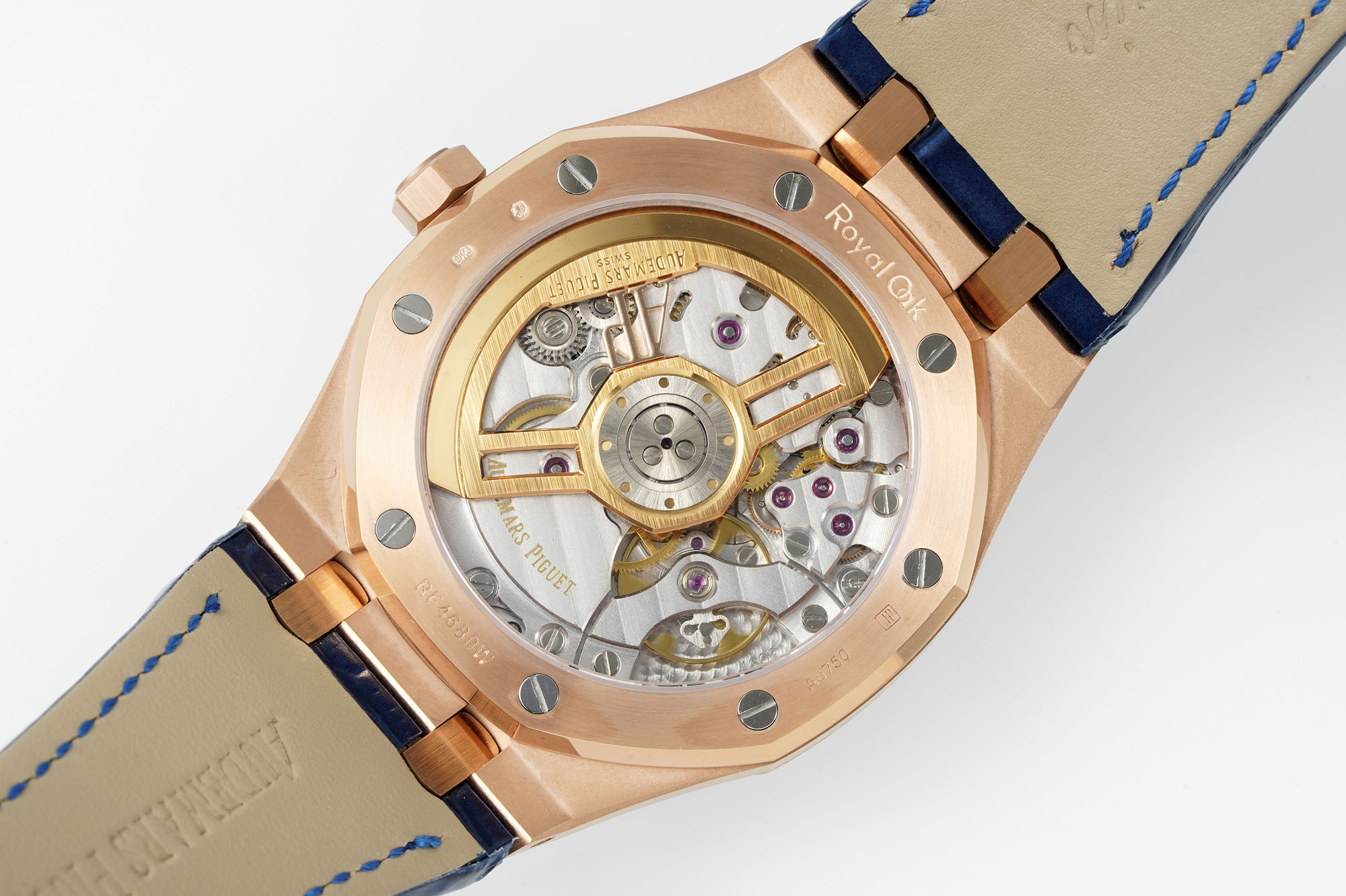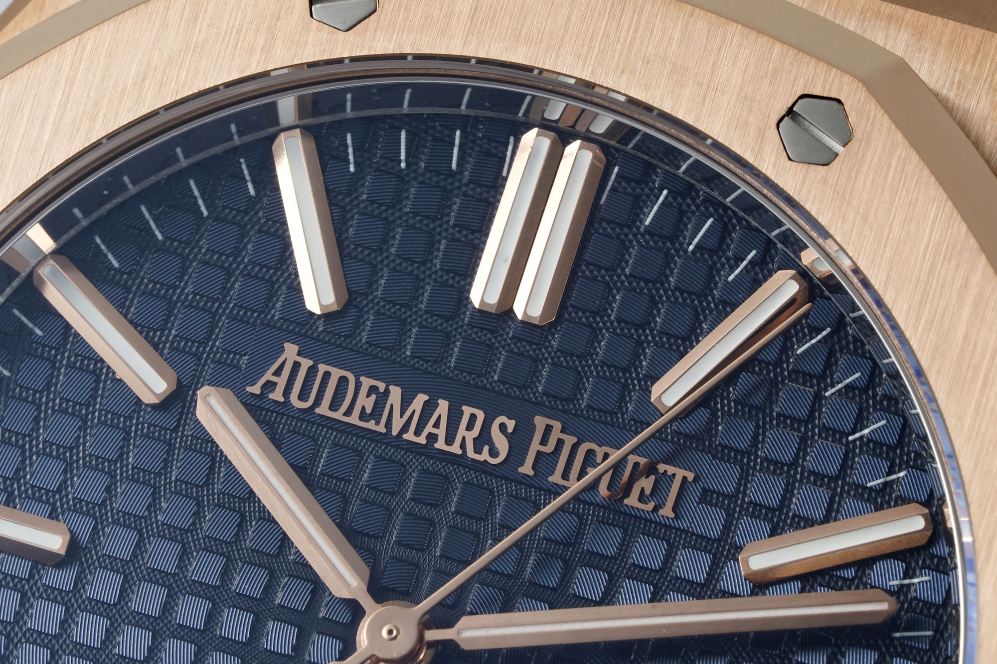 時計の文字盤のあらゆるディテールが驚異的な忠実さで再現されています。時針と分針はわずかに細く、秒針は前モデル(Ref. 15500)と比べて0.5mm延長されており、DDFが目指す精度を反映しています。文字盤のロゴはリアリティを持って実行されており、細かい刻印はオリジナルの特徴的なスタイルを模倣しています。特に「A」の独特な脚のデザインから「E」の複雑な角度まで、細部へのこだわりが光ります。