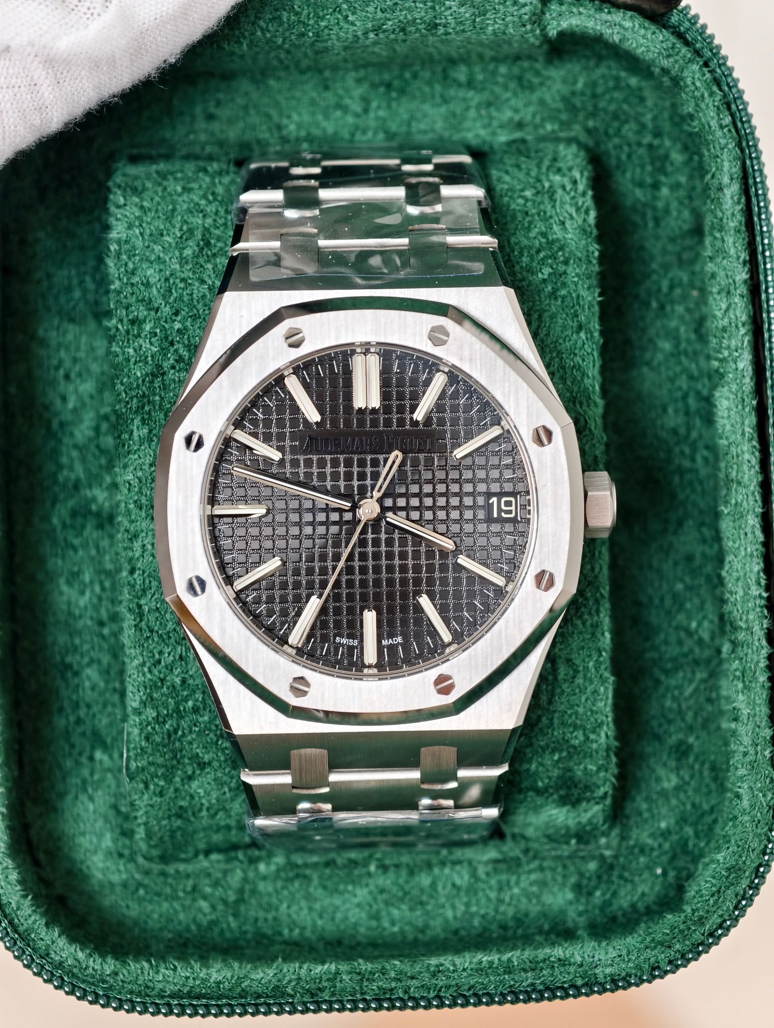 ロイヤルオークは、オーデマ・ピゲと同義語となっており、その独特なデザインと技術力によって、アイコン的な地位を保持しています。DDF 15510STモデルも例外ではなく、ブラックフェイスがその時を超えた美学を引き立てています。この時計は、オリジナル仕様のケースセットを活用しており、その構造的な完全性が本物のモデルと同様であることを保証します。さらに、4302ムーブメントによって駆動されており、カード度調整のないバランスホイールを含む重要なアップグレードが施されており、精度を高めながらもスリムなプロファイルを維持しています。