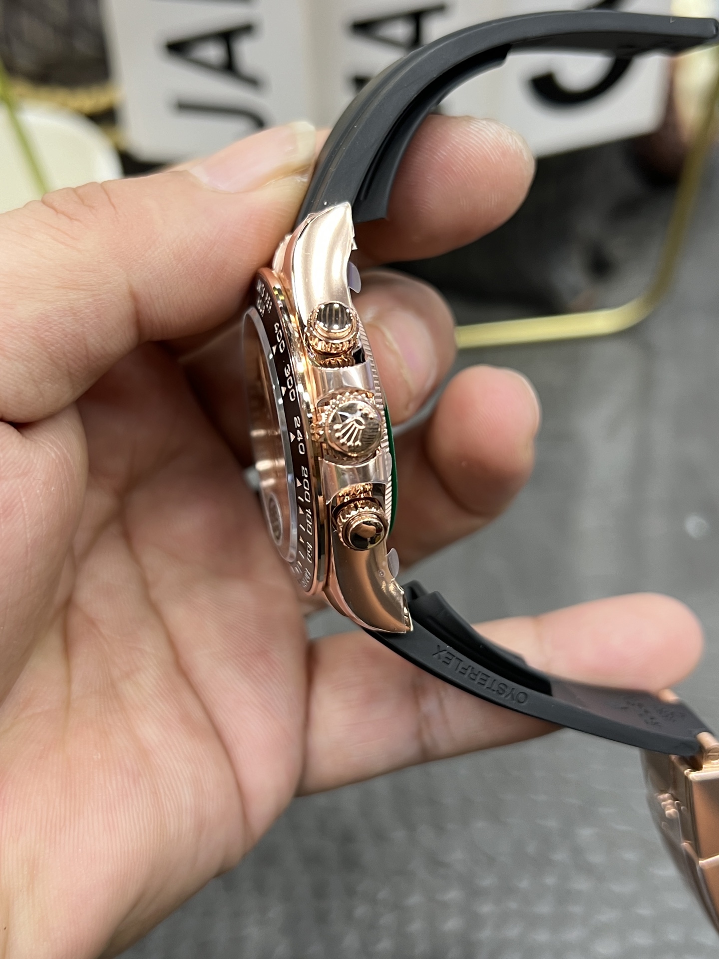ローズゴールドと頑丈なラバーストラップの融合というコンセプトは、ラグジュアリー時計製造の進化する基準を物語っています。伝統的には、レザーやメタルストラップが豪華さを象徴してきましたが、ラバーストラップの採用は単なる流行への転換ではありません。むしろ、それは現代的で実用的な美学を反映しており、ローズゴールドの暖かいトーンと視覚的かつ触覚的に対比を提供します。このデザイン選択は、快適さを犠牲にすることなく優雅さを求める現代の観客に応えるものであり、今日の忙しいライフスタイルにおいて非常に重要な考慮事項です。