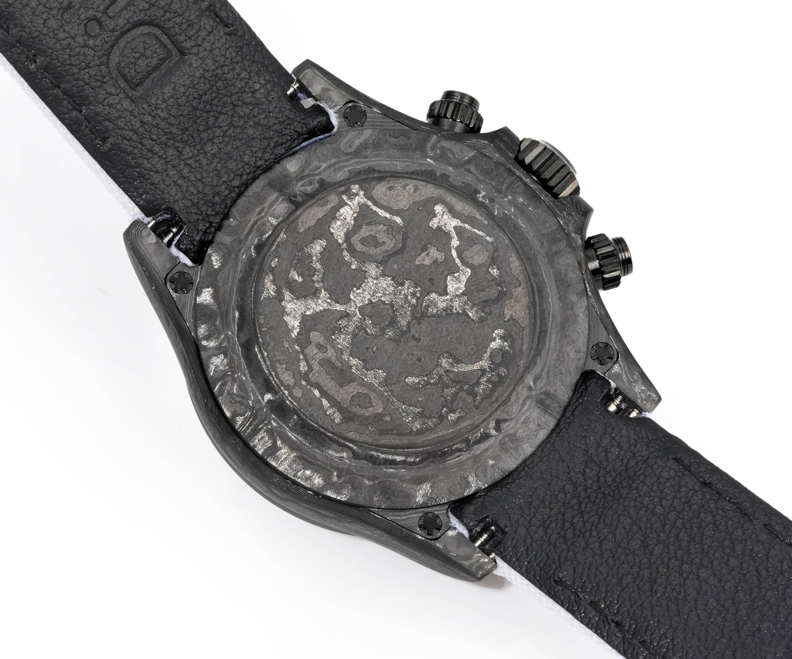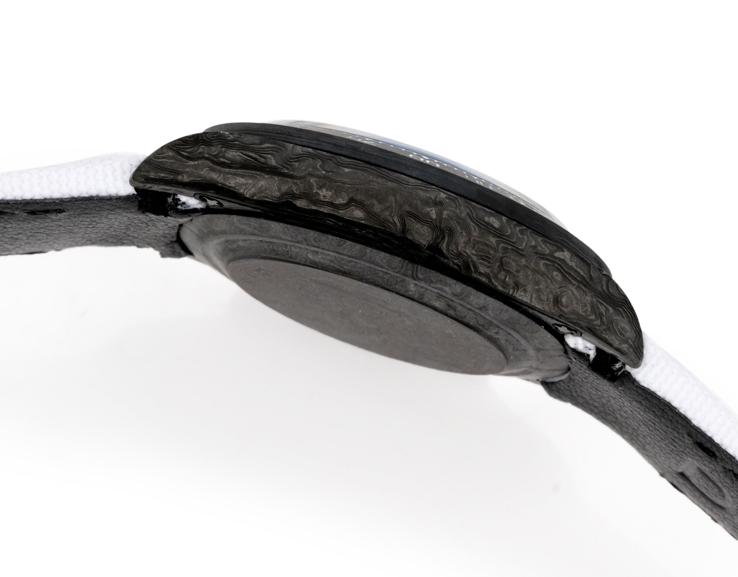 カーボンファイバーは慎重に手作業で仕上げられ、面取りのポリッシュが施されており、傷に強く耐久性を高める豪華な質感を与えています。超高輝度パウダーと組み合わせることで、低照度条件での視認性を高め、形状と機能を強調しています。