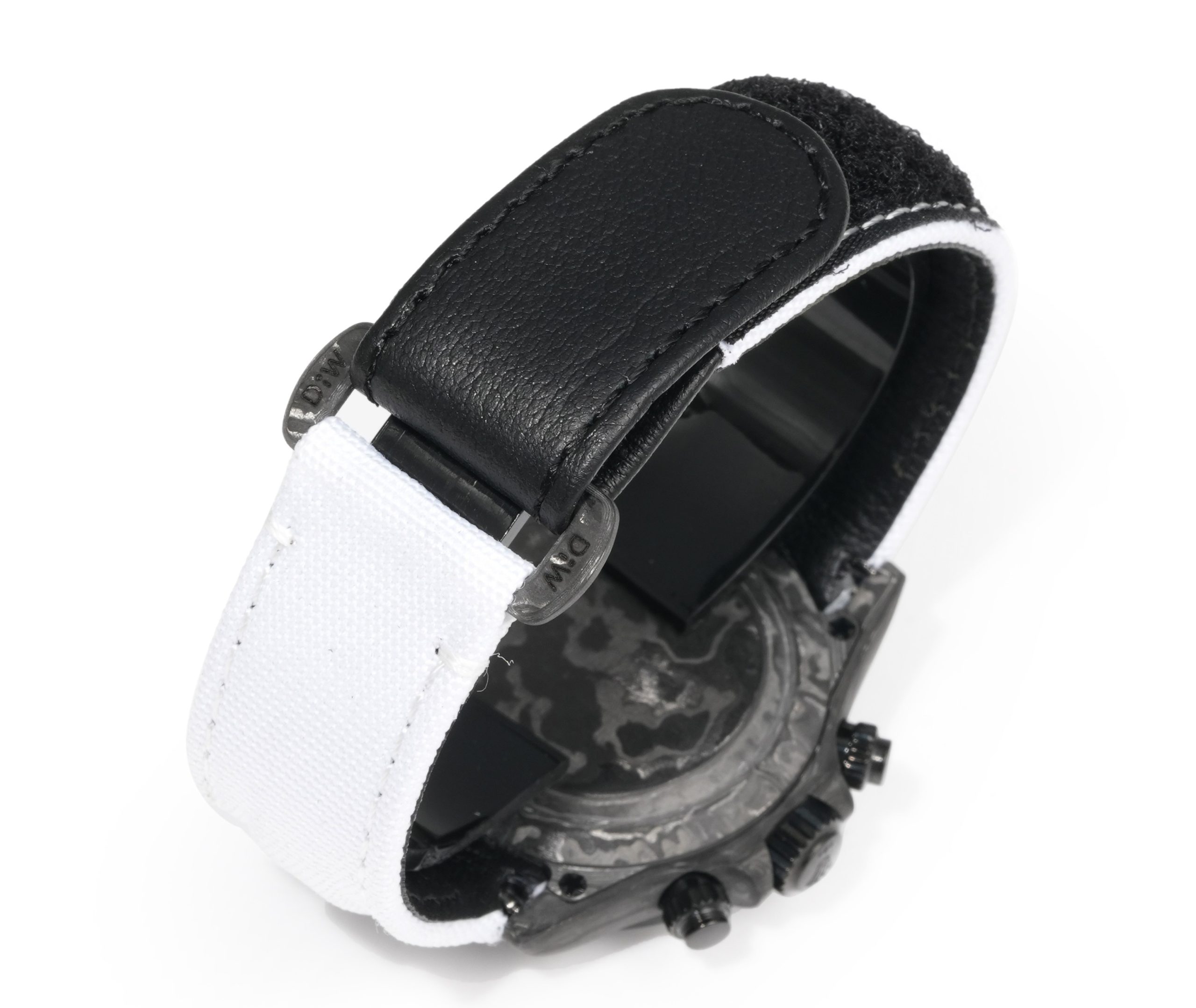 革新的なケースを補完するのは、通気性と快適さを重視した合成繊維で織られたストラップです。この構造選択は、ラグジュアリーレプリカにおける持続可能性とユーザー中心のデザインへの傾向を反映しています。ストラップの柔らかい質感は、エルゴノミックなフィット感を保証し、日常の使用に適した魅力的なオプションとなっています。